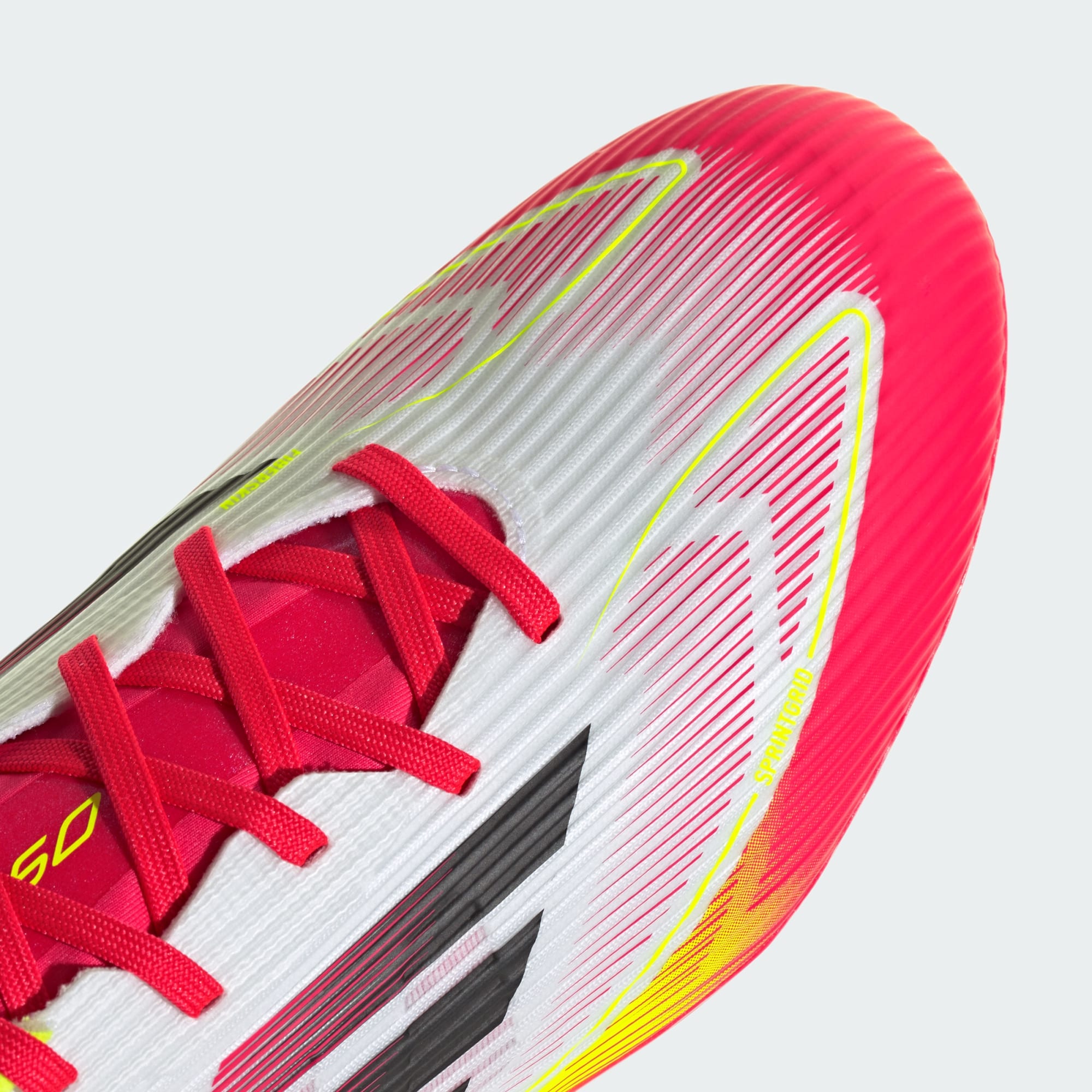 Acelera tu ritmo al máximo con la ligereza del calzado adidas F50, diseñado para dotar a tus pies de una velocidad vertiginosa. Esta bota de fútbol League presenta un empeine Fiberskin con un llamativo estampado Sprintgrid y una lengüeta envolvente que se ajusta al tobillo ofreciéndote una sujeción imbatible. La suela optimizada para césped natural húmedo te ayuda a desplegar toda tu agilidad.