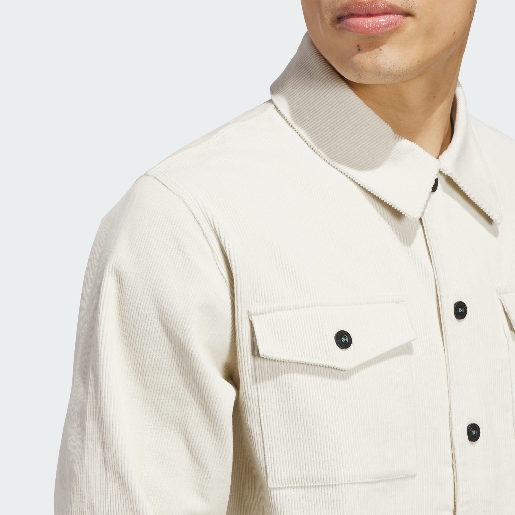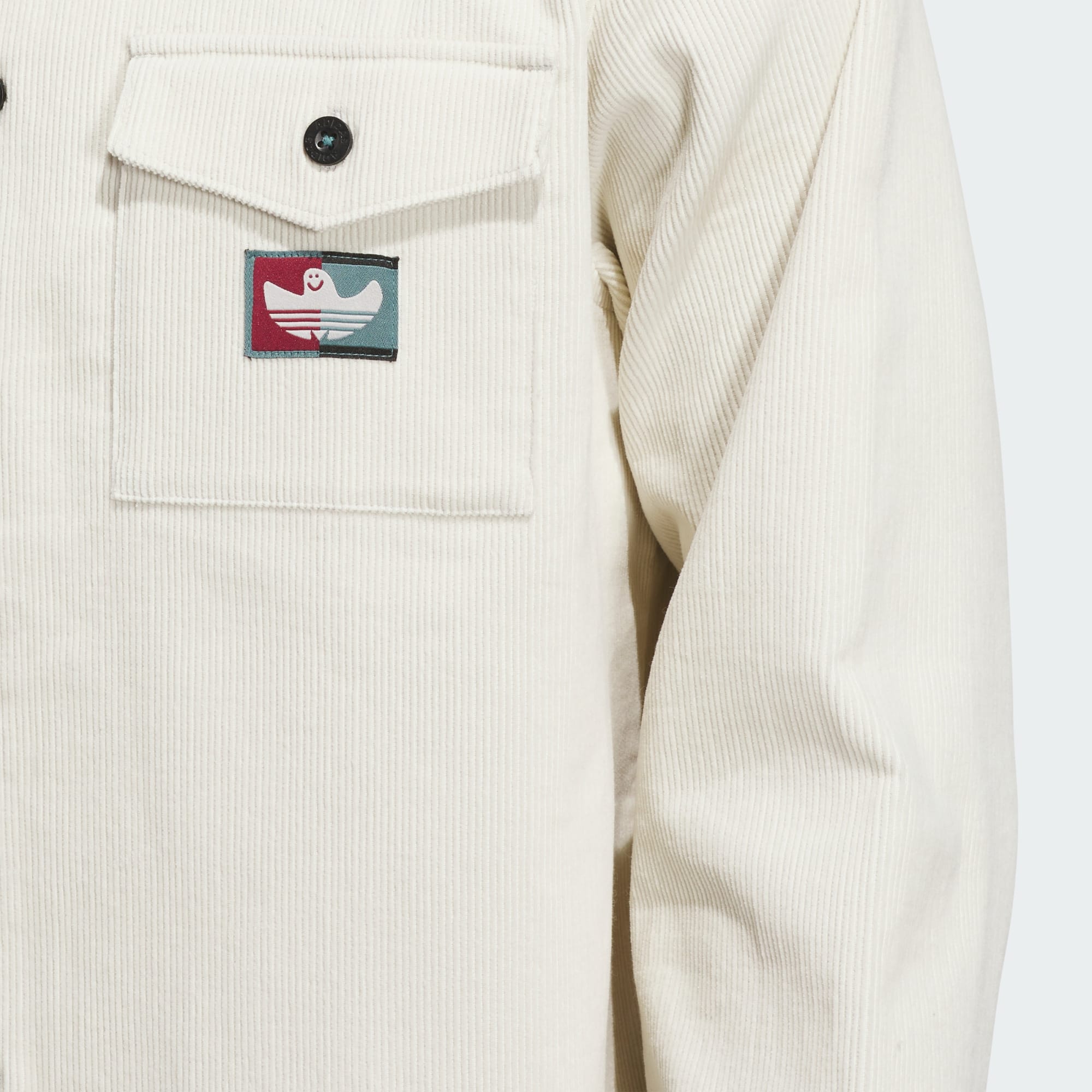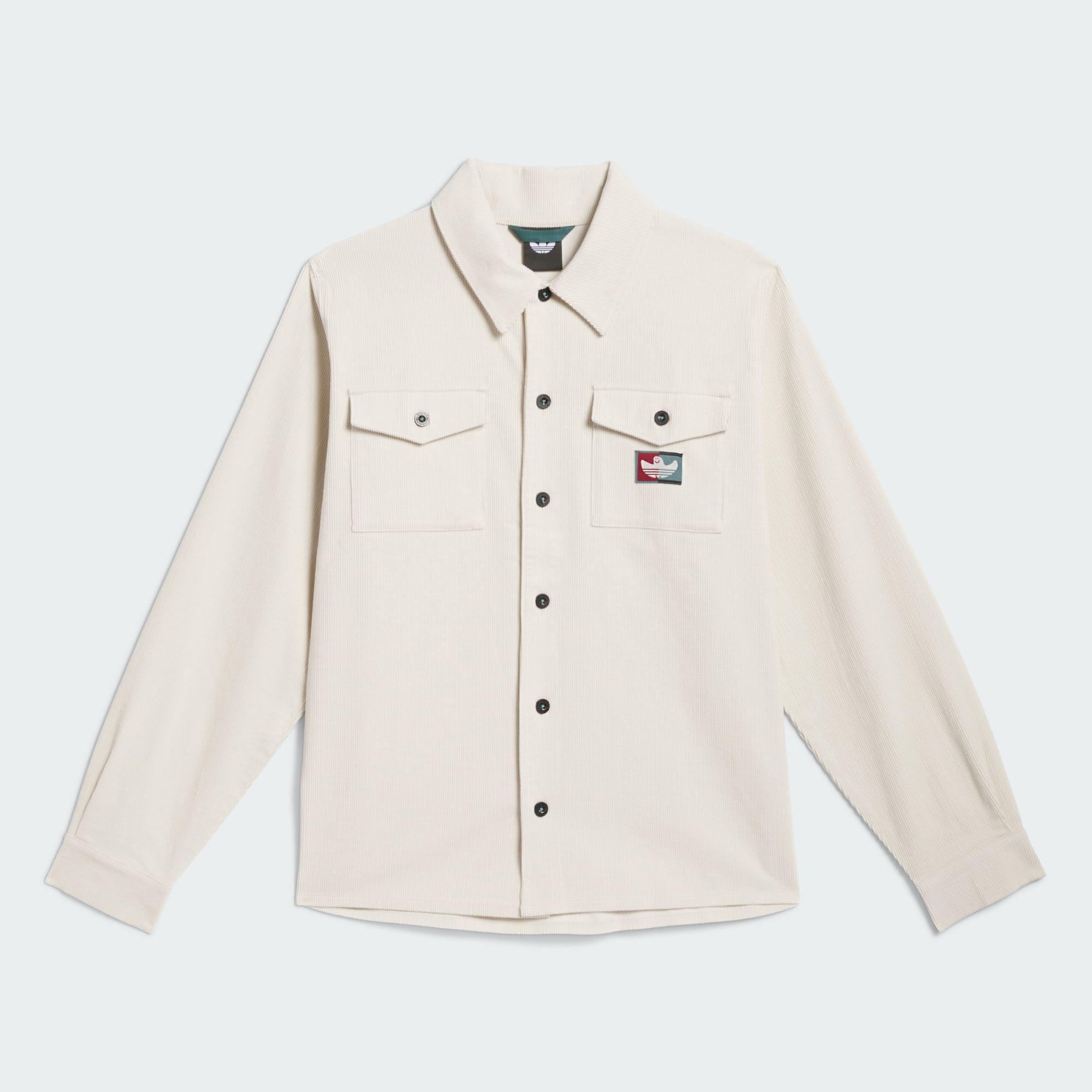 La camisa de pana Shmoofoil Button Up, que incorpora materiales únicos y detalles creativos ideados por el icono de adidas Skateboarding, Mark Gonzales, supone un rediseño personalizado del parche, el corte inconfundible y el cierre frontal con botones de la Shmoofoil clásica. Esta prenda se ha diseñado bajo los criterios de UNITEFIT, un sistema de tallaje técnico de género neutro creado para adaptarse a diversos tamaños, géneros y formas.