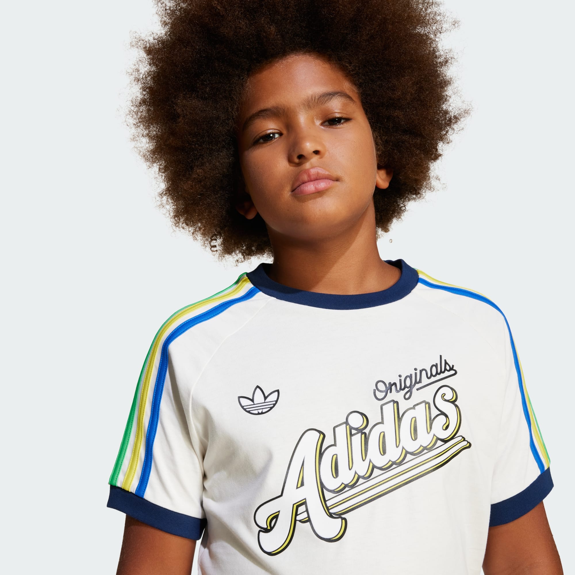 Inspirada en nuestro legado deportivo, esta camiseta adidas para jóvenes con estilo luce colores vibrantes y divertidos estampados. Las 3 bandas tricolores y el gran estampado de adidas Originals rinden homenaje a diseños retro de nuestros archivos. Su corte holgado le confiere un look informal.
