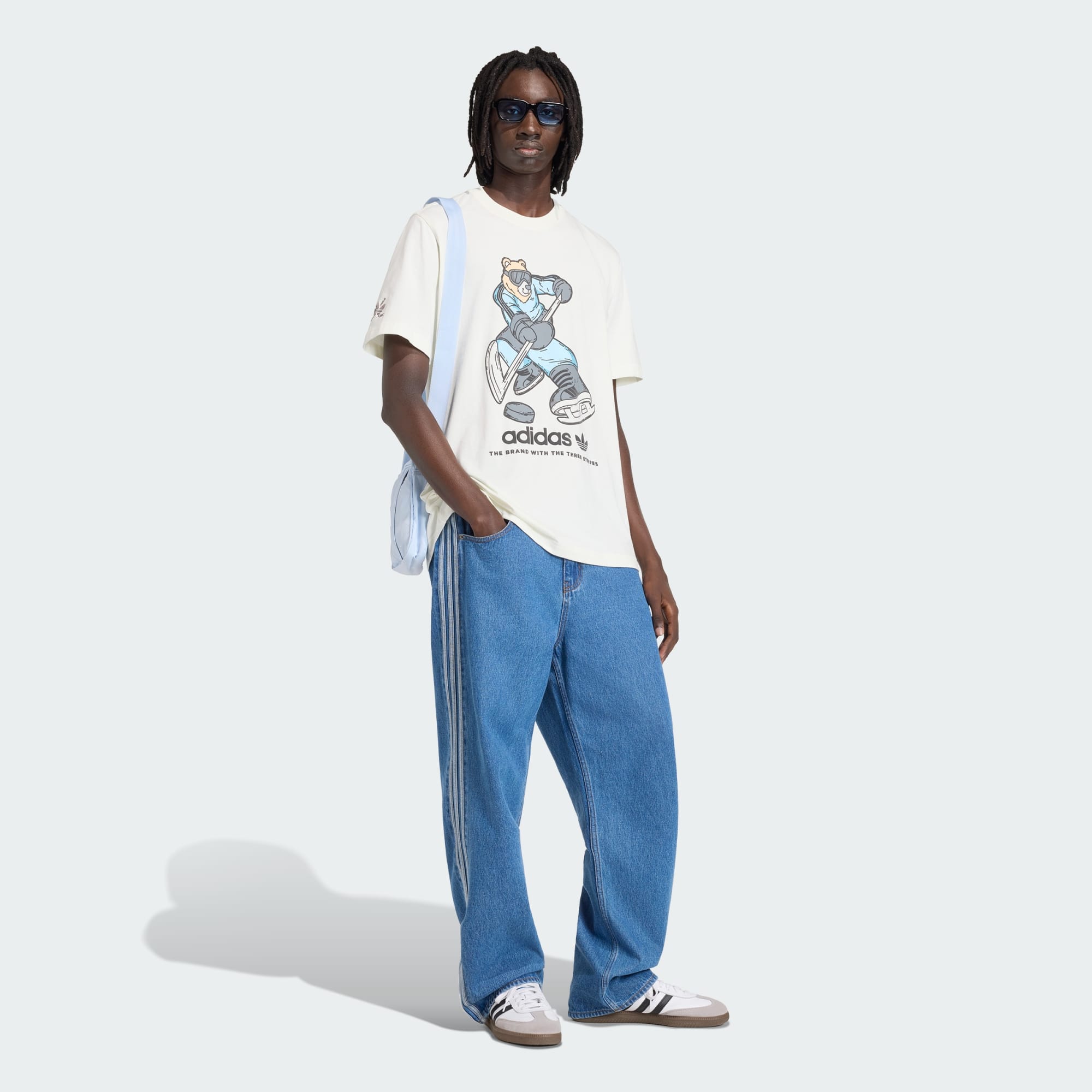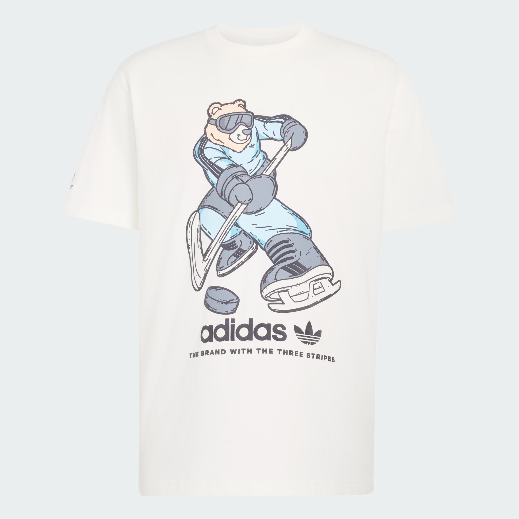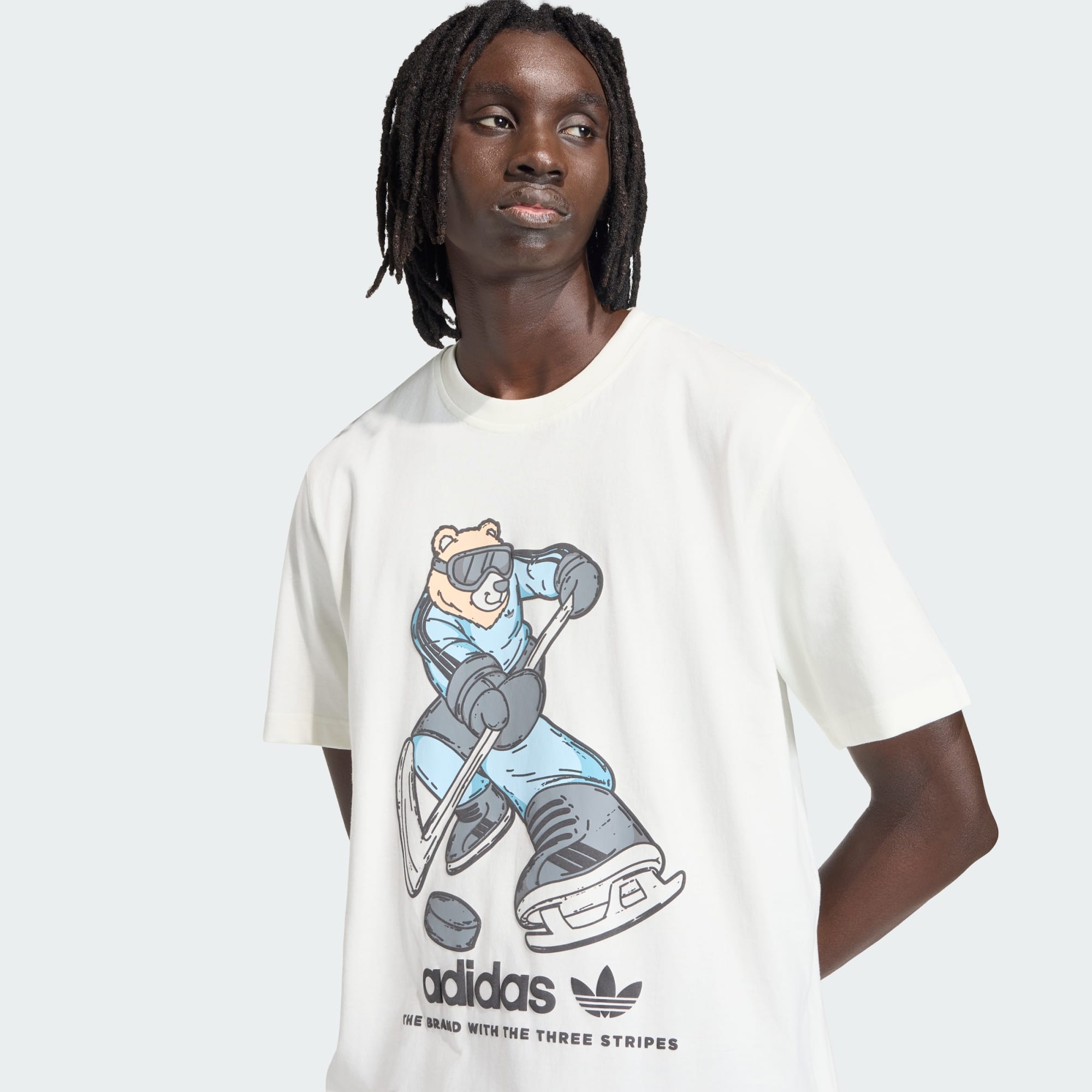 La camiseta de hockey estampada Bear de la colección adidas Originals ofrece una comodidad informal y refleja una actitud urbana que busca ser exclusiva. Presenta un corte holgado que confiere al instante un aire informal y una estructura de punto simple de algodón muy transpirable y suave al tacto. Pone la guinda un estampado brillante y atrevido de un oso jugando al hockey que reinterpreta la moda actual de un modo desenfadado y resulta adorable casi sin pretenderlo.