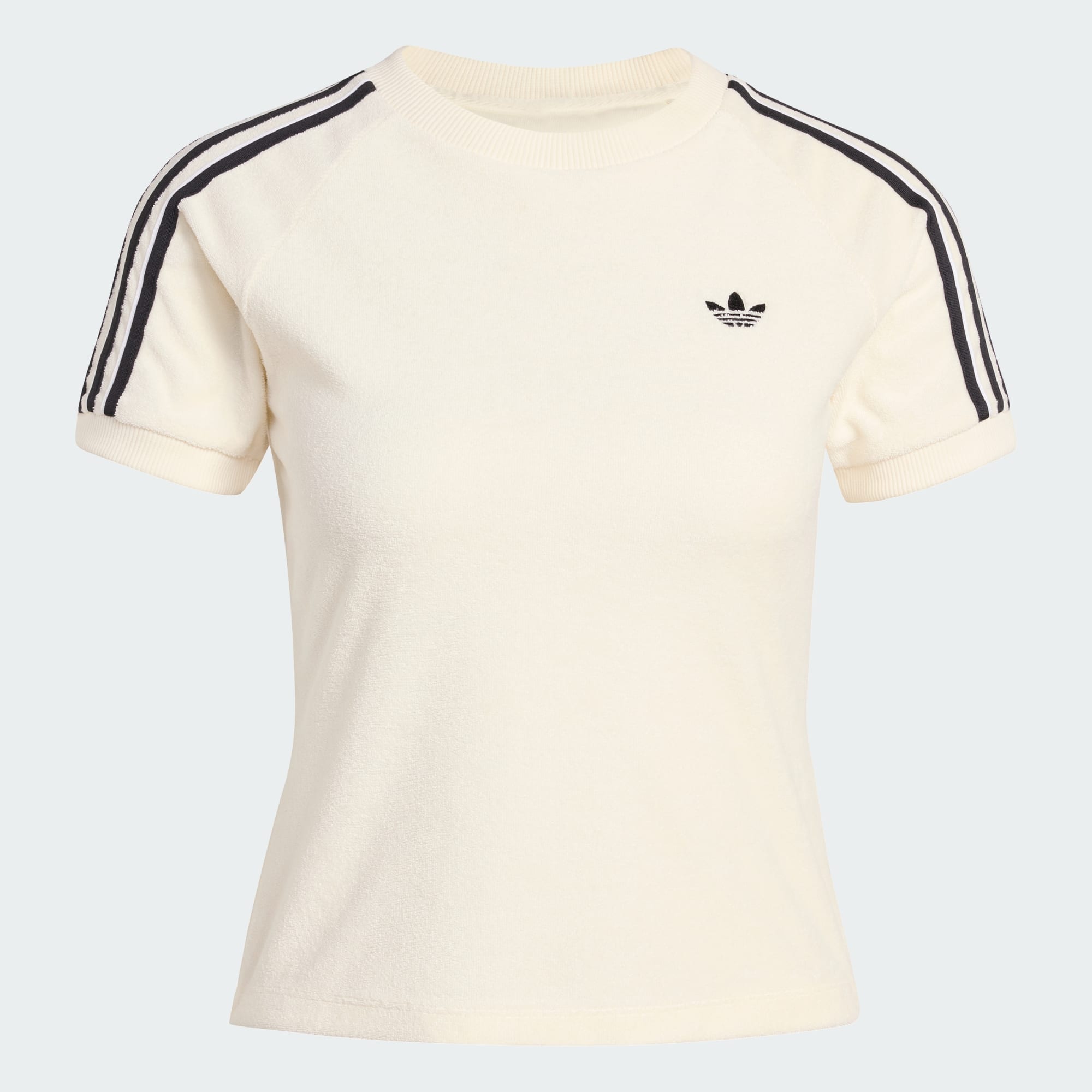 La camiseta de rizo Cali presenta una versión innovadora de un modelo deportivo clásico, y se define por la textura distintiva del tejido de felpa de rizo. Diseñado para el día a día, aporta comodidad y versatilidad con una silueta moderna a tu armario. El corte ajustado se adapta al cuerpo y presenta una silueta favorecedora, y el cuello redondo aporta un toque informal y desenfadado. El suave tejido presenta un tacto suave junto a la piel, que permite que lleves esta camiseta todo el día. El icónico trébol de adidas remata el look de esta camiseta, que combina un estilo deportivo retro con un look contemporáneo. El resultado es una prenda imprescindible que aporta personalidad a tu fondo de armario.