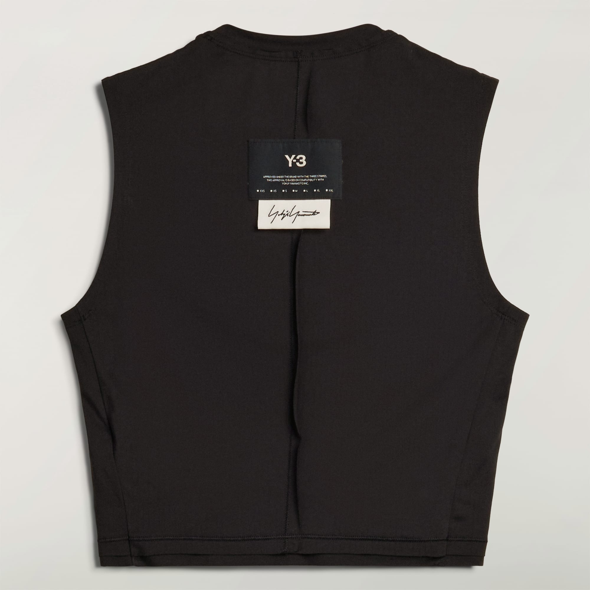 - Logotipo de Y-3 tejido y etiqueta cosida con la firma de Yohji Yamamoto