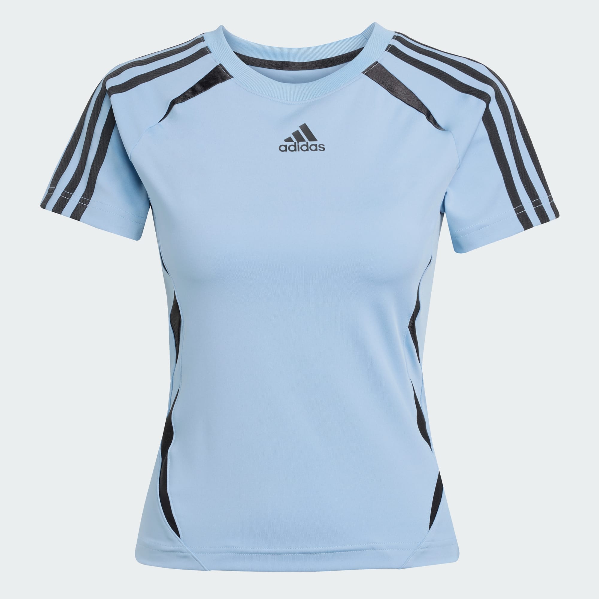 Fit is not like most adidas jerseys- it fits cropped and more bodycon. Wish I sized up 1-2 sizes. Normally a Small/petite but can barely get the shirt on
