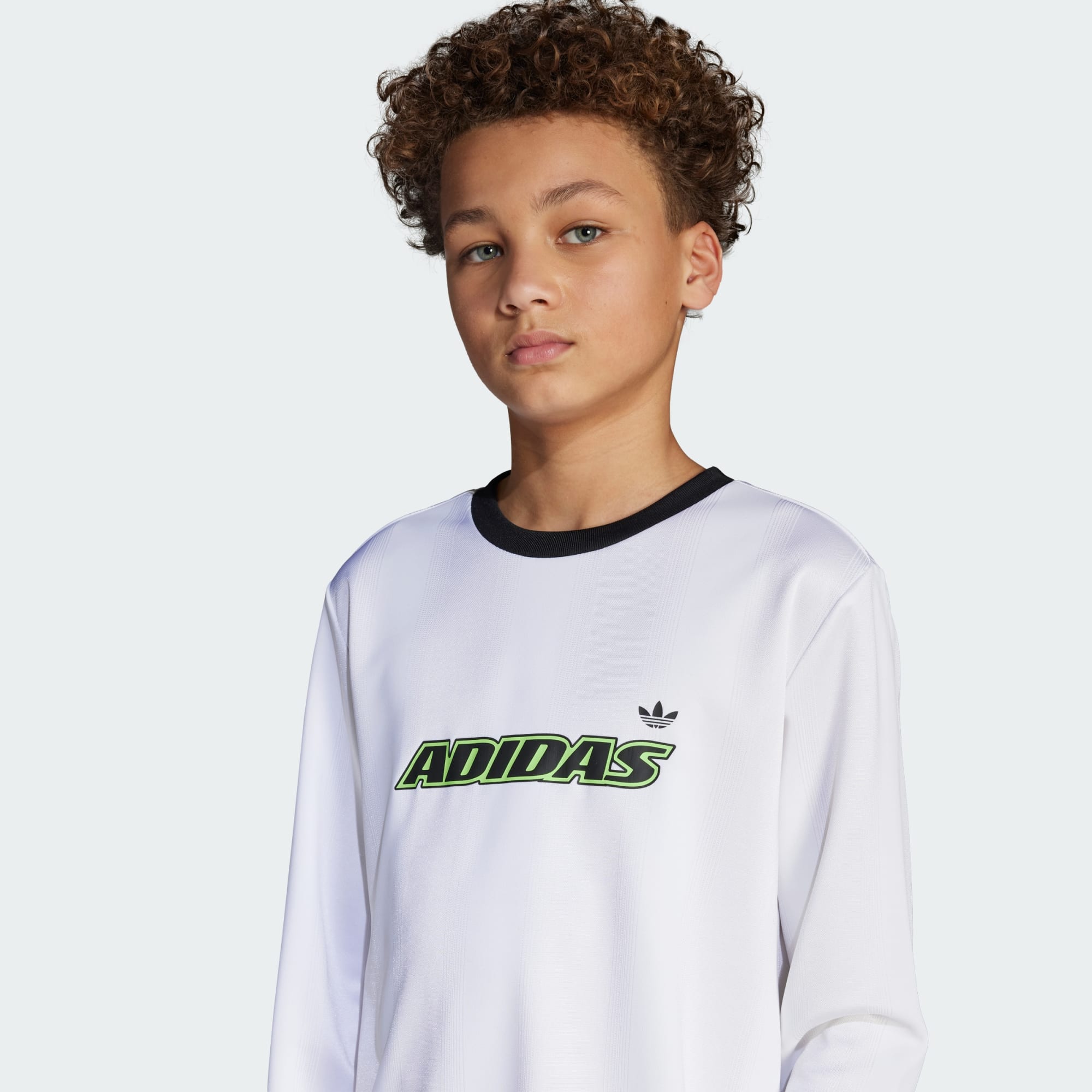 Esta camiseta de manga larga adidas para jóvenes seguidores de la moda captura el espíritu del deporte rey. El estampado de inspiración futbolística y el trébol cosido en el pecho reflejan tu pasión por este deporte. Se ha confeccionado en un suave tejido de algodón que te envuelve en comodidad durante todo el día.