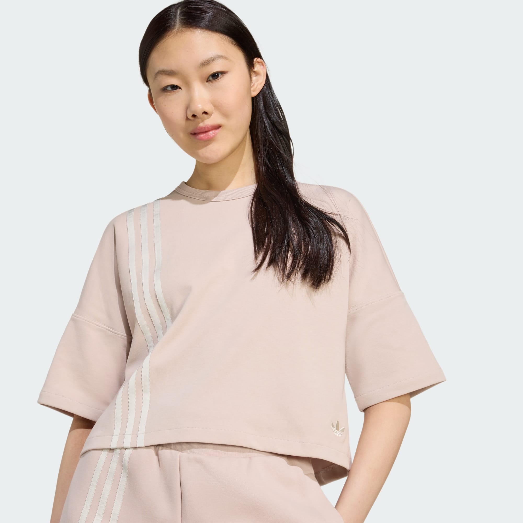 Una camiseta de punto holgada con las 3 Bandas verticales en un lateral
