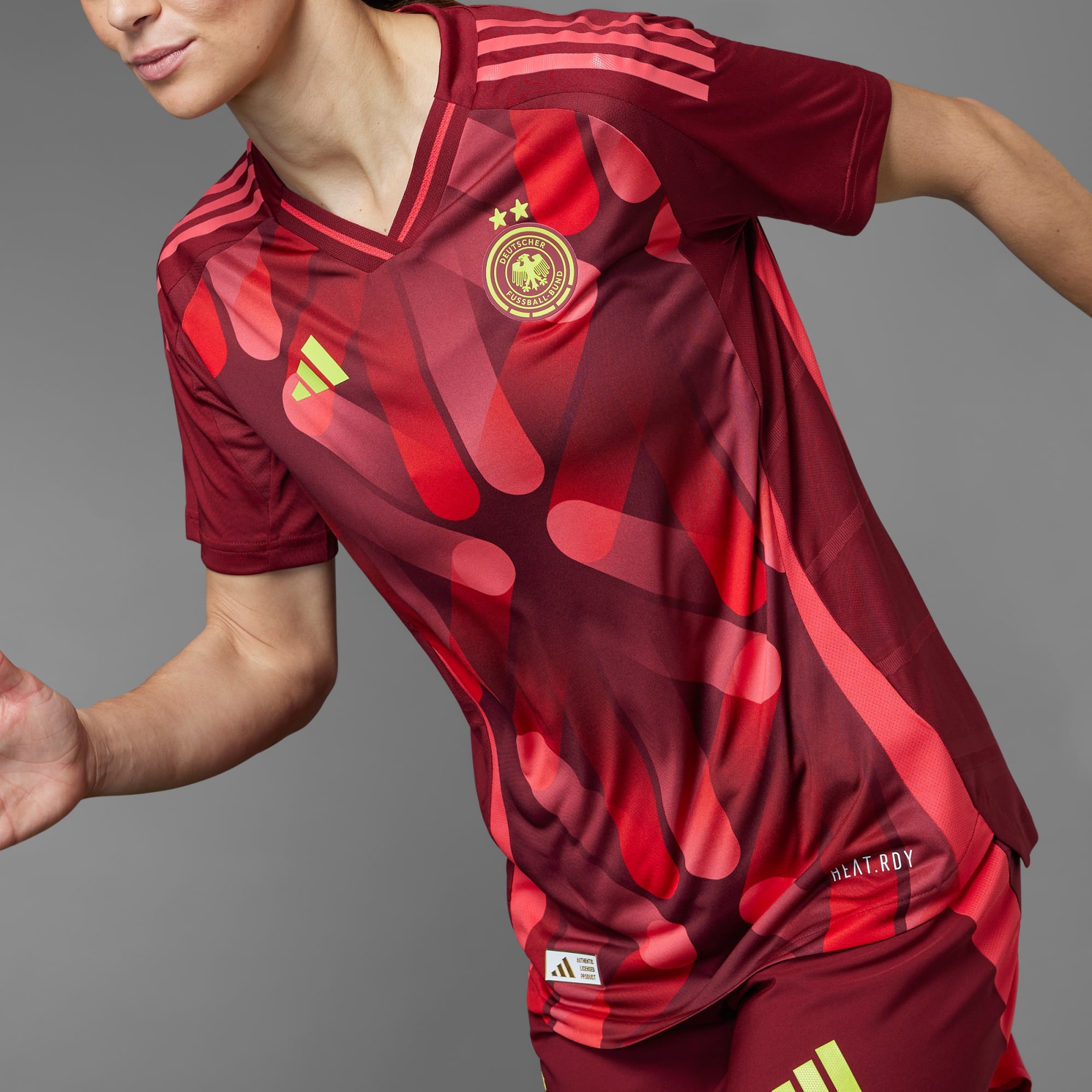 Para las apasionadas del deporte rey. La nueva segunda equipación de Alemania es una pieza artística que sus futbolistas lucirán en la UEFA EURO Femenina 2025™. Luce un llamativo estampado inspirado en el arte urbano del país teutón y se ha creado para despertar la creatividad en el terreno de juego. La tecnología HEAT.RDY y los materiales ligeros se combinan para ofrecer el máximo rendimiento y una gran comodidad y rapidez de movimientos.