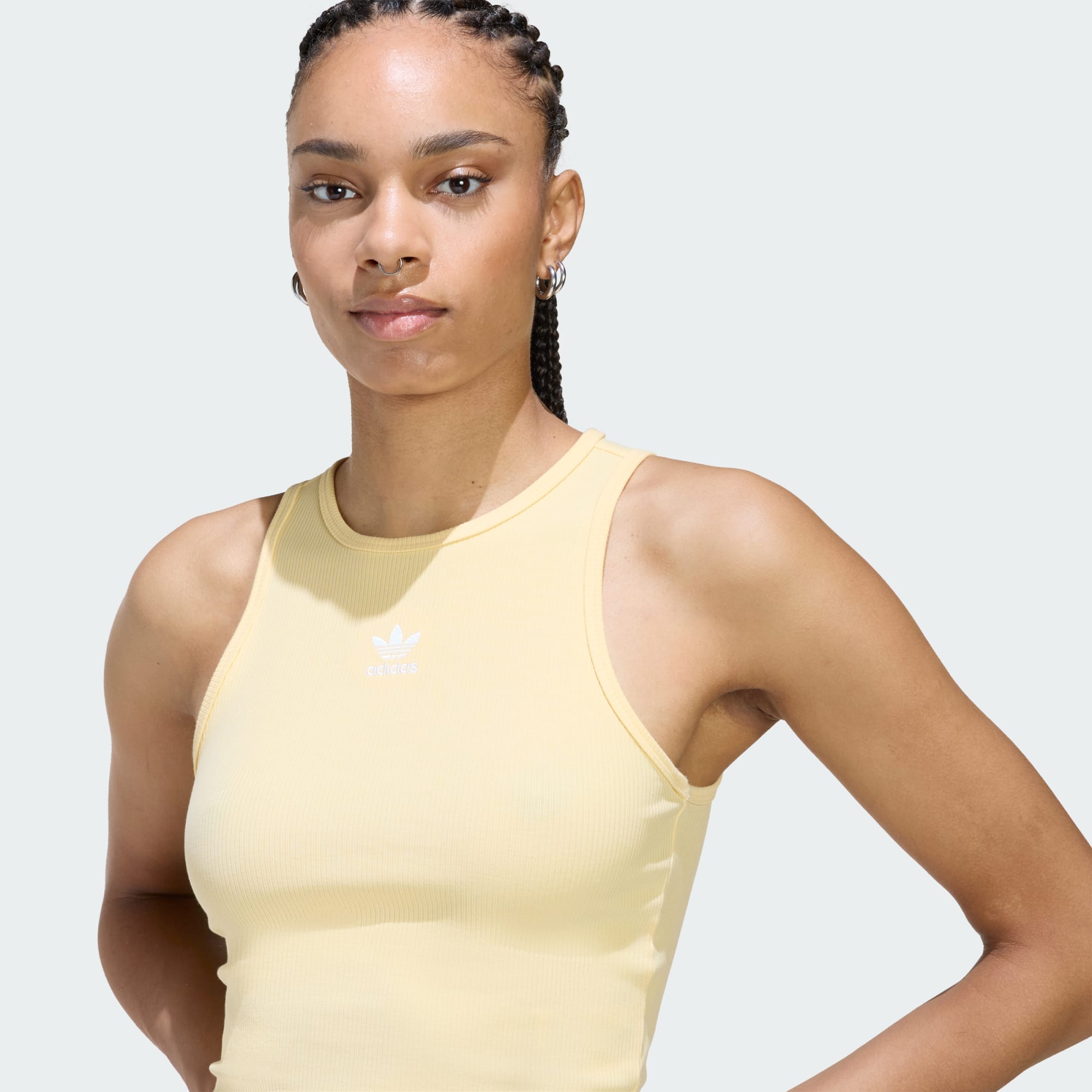 Disfruta de una comodidad extraordinaria y el mejor estilo informal con esta camiseta sin mangas adidas. Presenta un corte entallado y se ha confeccionado en un tejido de punto de canalé ligero que se adapta a tu silueta y te permite moverte con total libertad. Combínala con un pantalón deportivo o tus vaqueros preferidos y dale un toque versátil a tus looks.