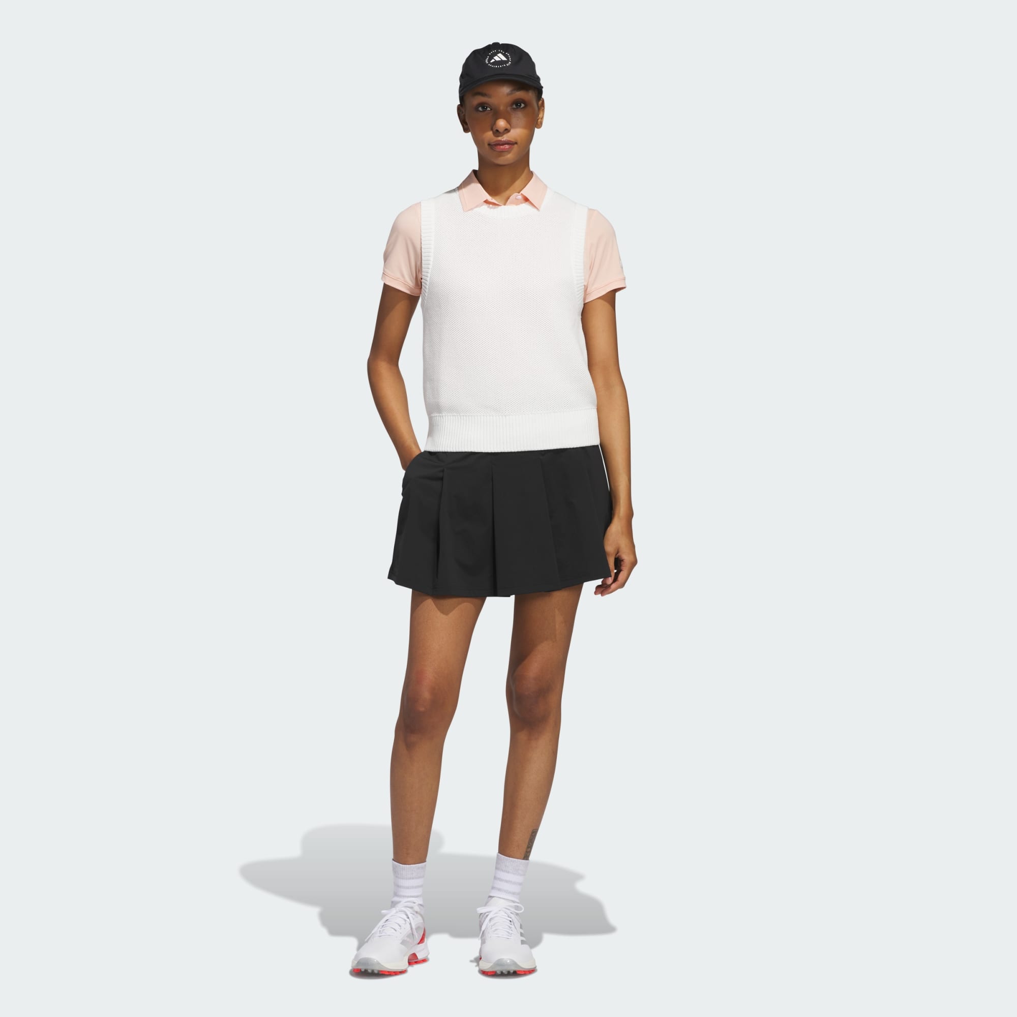 Este chaleco de golf adidas te brinda la cobertura ligera que necesitas en tus rondas matutinas. Combina detalles clásicos con un tejido de punto de algodón con estructura de nido de abeja que le confiere un estilo actual dentro y fuera del green.