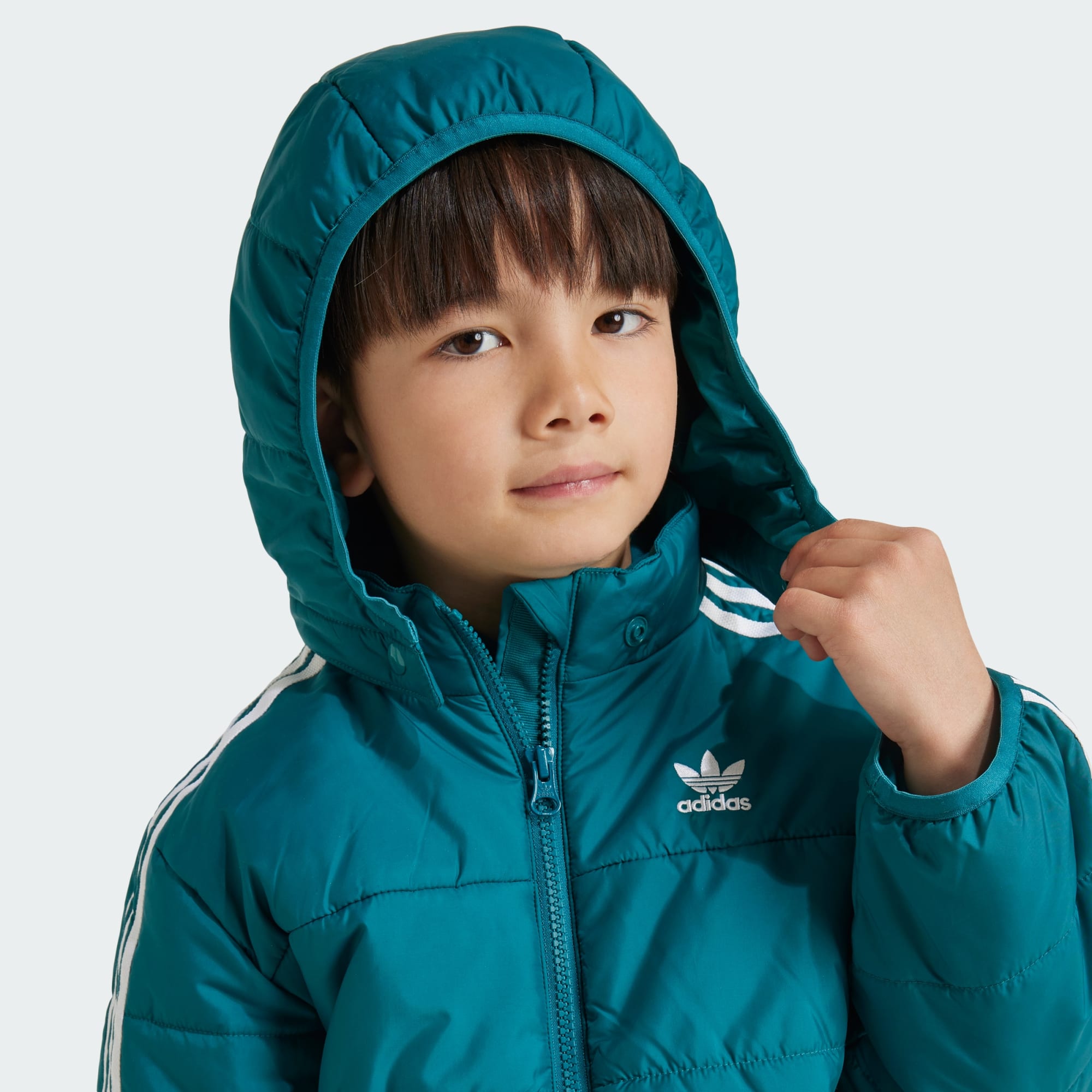 Convierte esta chaqueta adidas para peques con estilo en la compañera fiel para todas sus aventuras. Las 3 bandas en las mangas y el trébol bordado en el pecho rinden homenaje a nuestro legado. El cierre de cremallera, el cuello alzado y la capucha con cordón ajustable completan un diseño que destaca por su comodidad. Este producto se ha fabricado con un 100% de materiales reciclados. Utilizando materiales reciclados, reducimos los residuos, nuestra dependencia de los recursos finitos y la huella que generan los productos que fabricamos.
