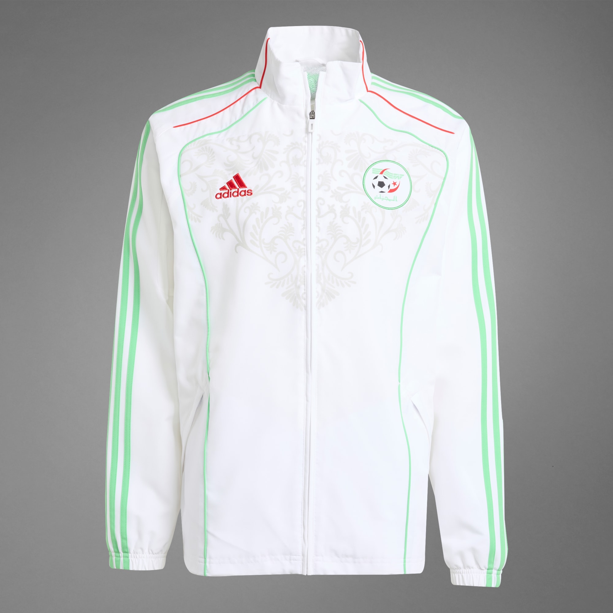 Vístete con el espíritu de la selección argelina. Esta chaqueta adidas luce los colores característicos del combinado, el escudo de la federación y detalles inspirados en la moda futbolística de hace una década. Combínala con el pantalón a juego o con unos vaqueros y saca al hincha que llevas dentro, tanto en el día de partido como en cualquier otra ocasión. Este producto se ha fabricado con un 100% de materiales reciclados. Utilizando materiales reciclados, reducimos los residuos, nuestra dependencia de los recursos finitos y la huella que generan los productos que fabricamos.