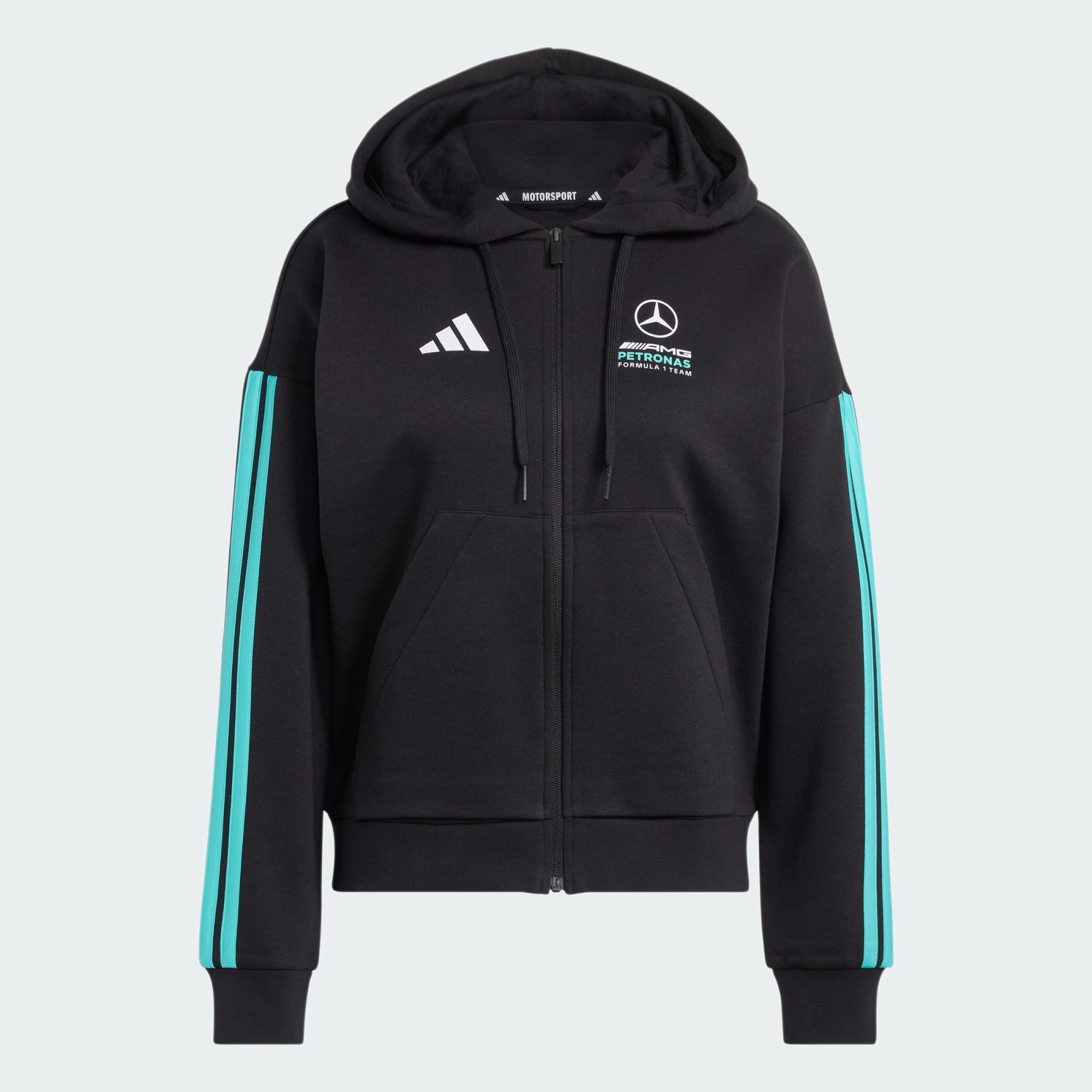 Sudadera con capucha y cierre de cremallera para las aficionadas al automovilismo, con detalles del equipo de Fórmula 1 Mercedes-AMG Petronas