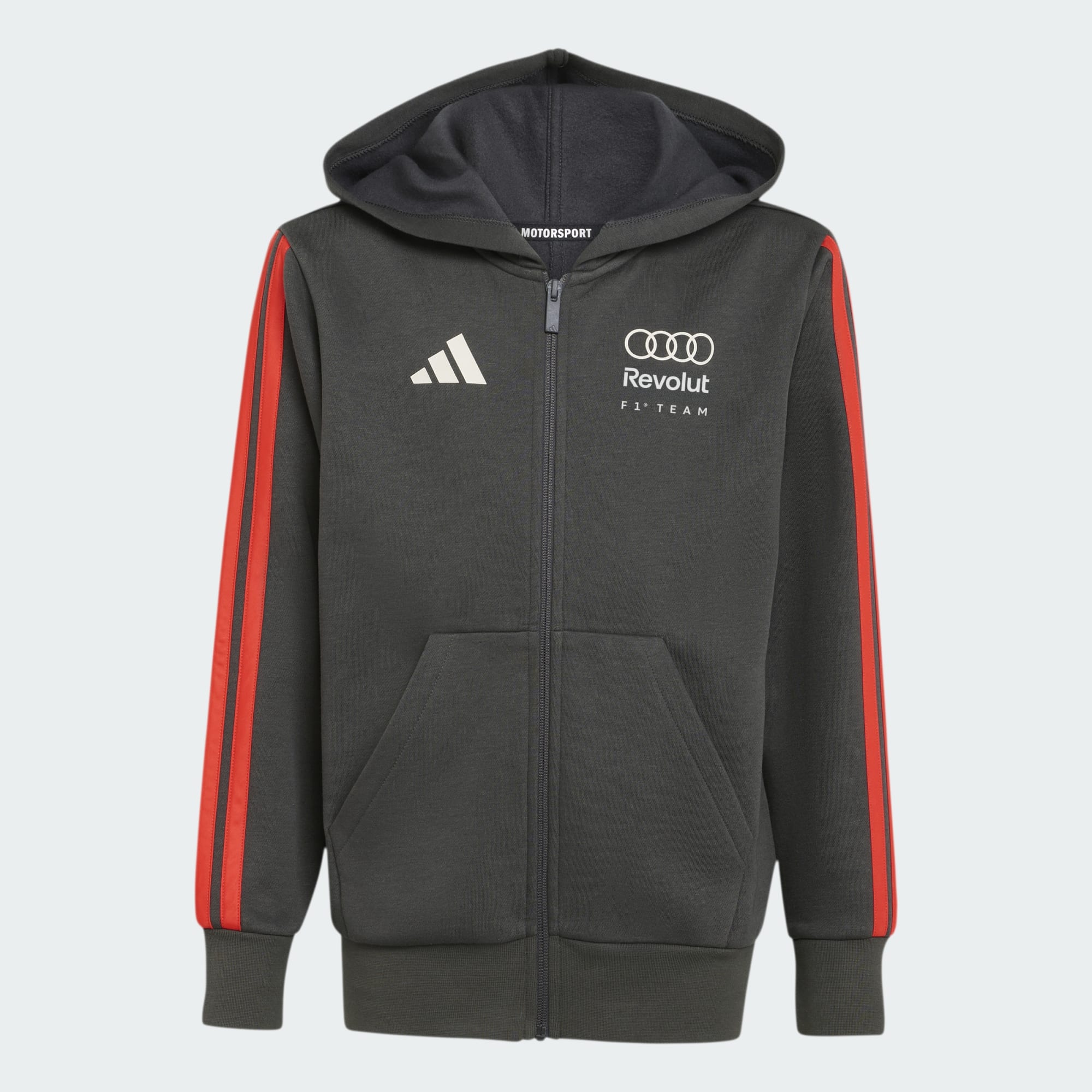 Rinde homenaje al mundo del motor con esta sudadera con capucha y cierre de cremallera Audi Formula One Team DNA. Diseñada para la afición joven que vive con pasión la emoción de la carrera, esta sudadera con capucha forma parte de la exclusiva colección Audi Formula One Team Fanware. Con el icónico logotipo del equipo Audi, es una pieza imprescindible para entusiastas junior del automovilismo. El corte clásico y el moderno diseño de las 3 bandas ofrecen un aspecto elegante que capta el espíritu del rendimiento. La confección en cómoda felpa protege del frío con estilo en los días de fresco. El cierre de cremallera y la capucha aportan versatilidad y funcionalidad, tanto en el circuito como en las aventuras cotidianas. No importa si es hora de ir al cole, al parque o a animar a su equipo favorito, esta sudadera con capucha es más que una prenda de ropa; es una declaración de pasión por el deporte. Vive la emoción y permite que tu peque proclame su pasión por el automovilismo con adidas.