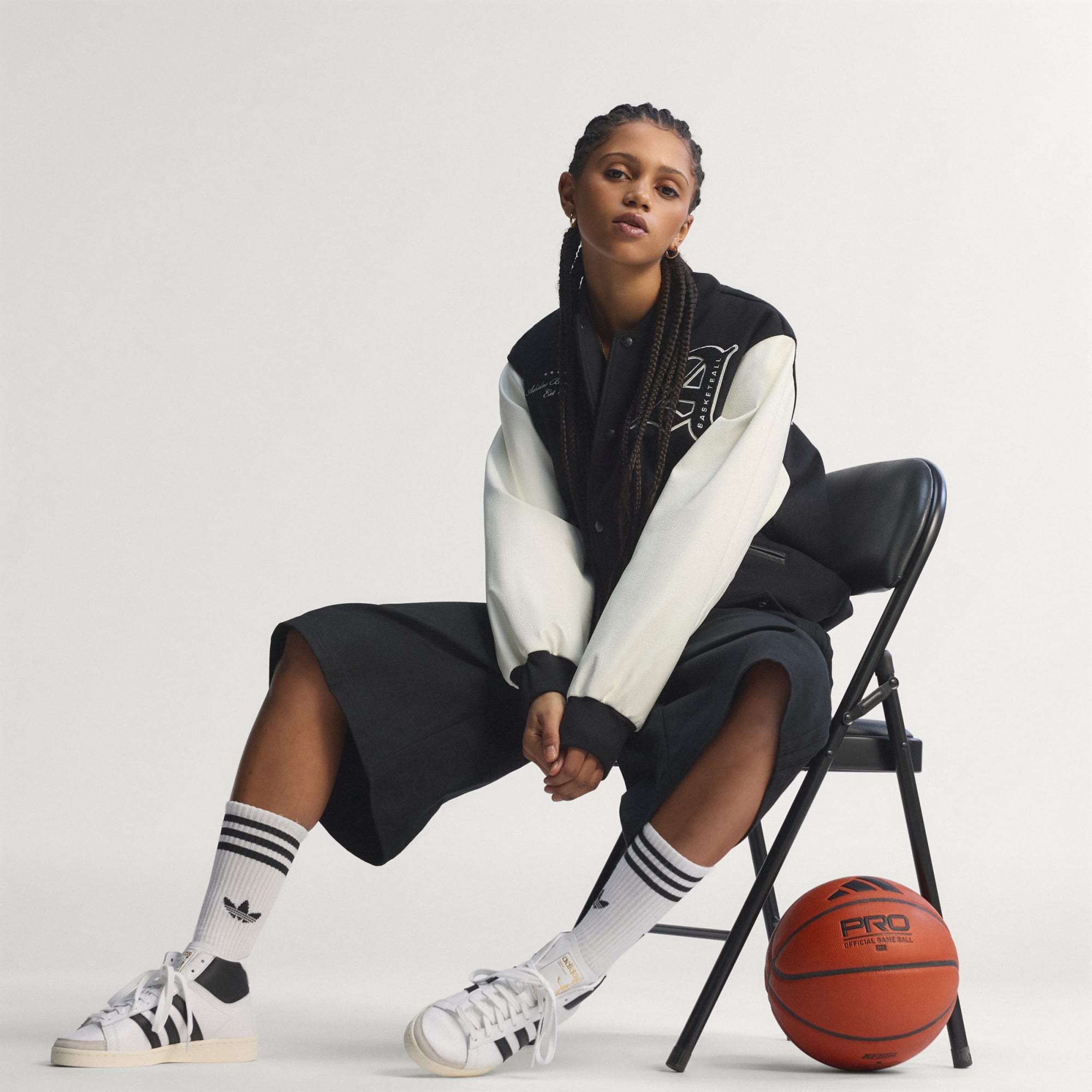 Una chaqueta de estilo colegial con diseño de baloncesto para quienes viven el deporte con pasión.