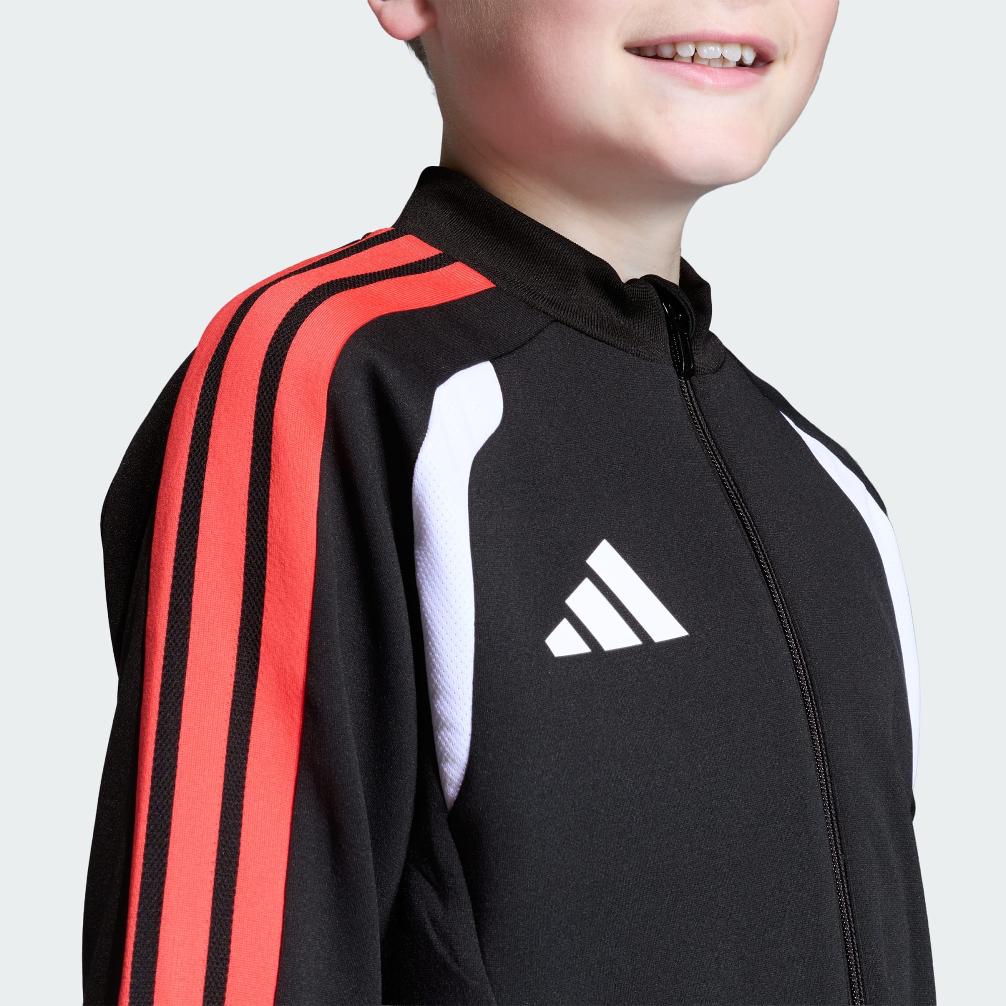 Míralos saltar al campo con confianza luciendo la chaqueta de entrenamiento Tiro 26 Competition. Diseñada para jóvenes atletas, esta chaqueta encarna el espíritu de nuestro ADN de fútbol, combinando herencia con innovación moderna. Confeccionada con materiales de gran calidad y elementos de diseño en relieve en los brazos y los laterales, esta chaqueta destaca por su aspecto elegante. Tiene cuello alto y cierre de cremallera para que los niños puedan ponérselo y quitárselo fácilmente. Las icónicas inserciones de malla en el pecho proporcionan ventilación, ayudándoles a sentirse secos y cómodos durante las intensas sesiones de entrenamiento. La tecnología Formotion, diseñada para liberar sus movimientos, no para restringirlos, les permite moverse con flexibilidad mientras lo dan todo. Tanto si está en el entrenamiento como jugando con los amigos, esta chaqueta proporciona sujeción a su estilo de vida activo. Deja que experimenten nuestro mejor rendimiento, corte y comodidad con esta prenda de nueva generación de adidas.