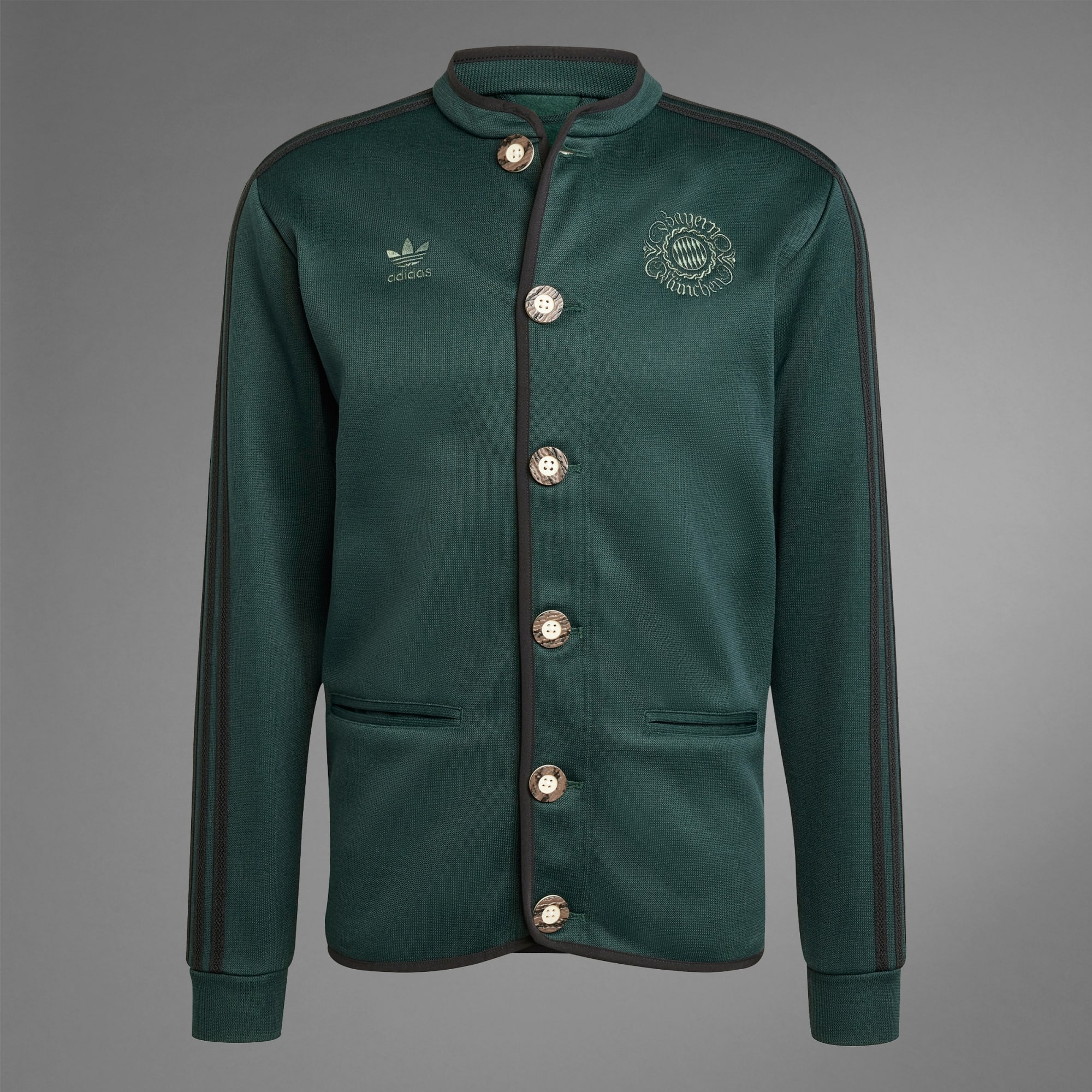 Inspirada en el espíritu del mayor festival de Múnich, adidas ha diseñado esta chaqueta tradicional para que los hinchas del FC Bayern se unan a las celebraciones del Oktoberfest. En la parte frontal destaca un clásico cierre de botones y una versión del escudo del club especialmente creada para la ocasión, aportándole un toque que no pasa desapercibido. Asimismo, el elaborado estampado en la espalda evoca los famosos bordados de los trajes tradicionales bávaros.