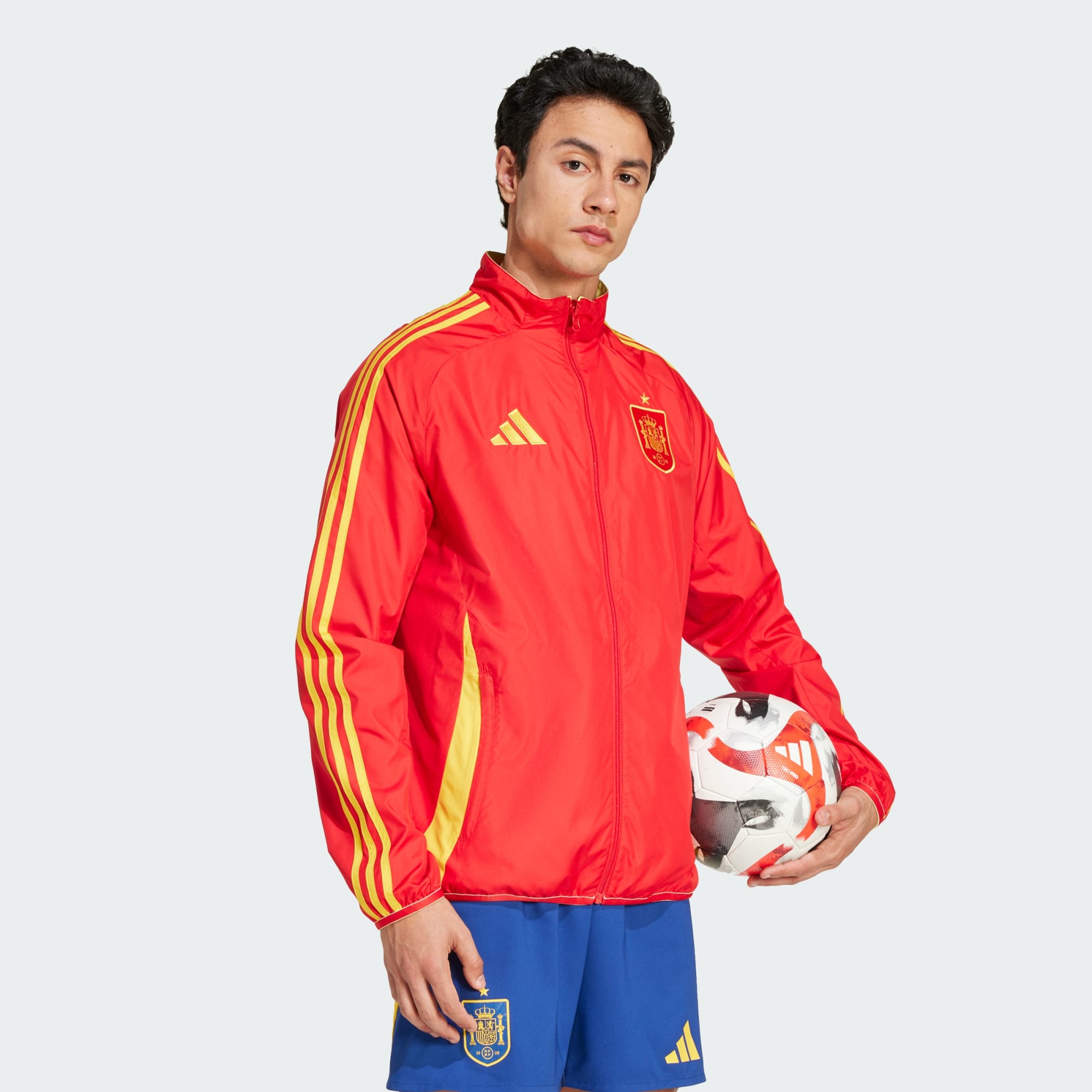 Siéntete parte de la selección con esta chaqueta de fútbol de España que derriba todas las barreras. Presenta un diseño reversible a juego con la primera y la segunda equipación del combinado y se ha confeccionado en un cómodo tejido ripstop con un cierre de cremallera. El escudo de la selección en cada lado duplica tu pasión. Este producto se ha fabricado con un 100% de materiales reciclados. Utilizando materiales reciclados, reducimos los residuos, nuestra dependencia de los recursos finitos y la huella que generan los productos que fabricamos.
