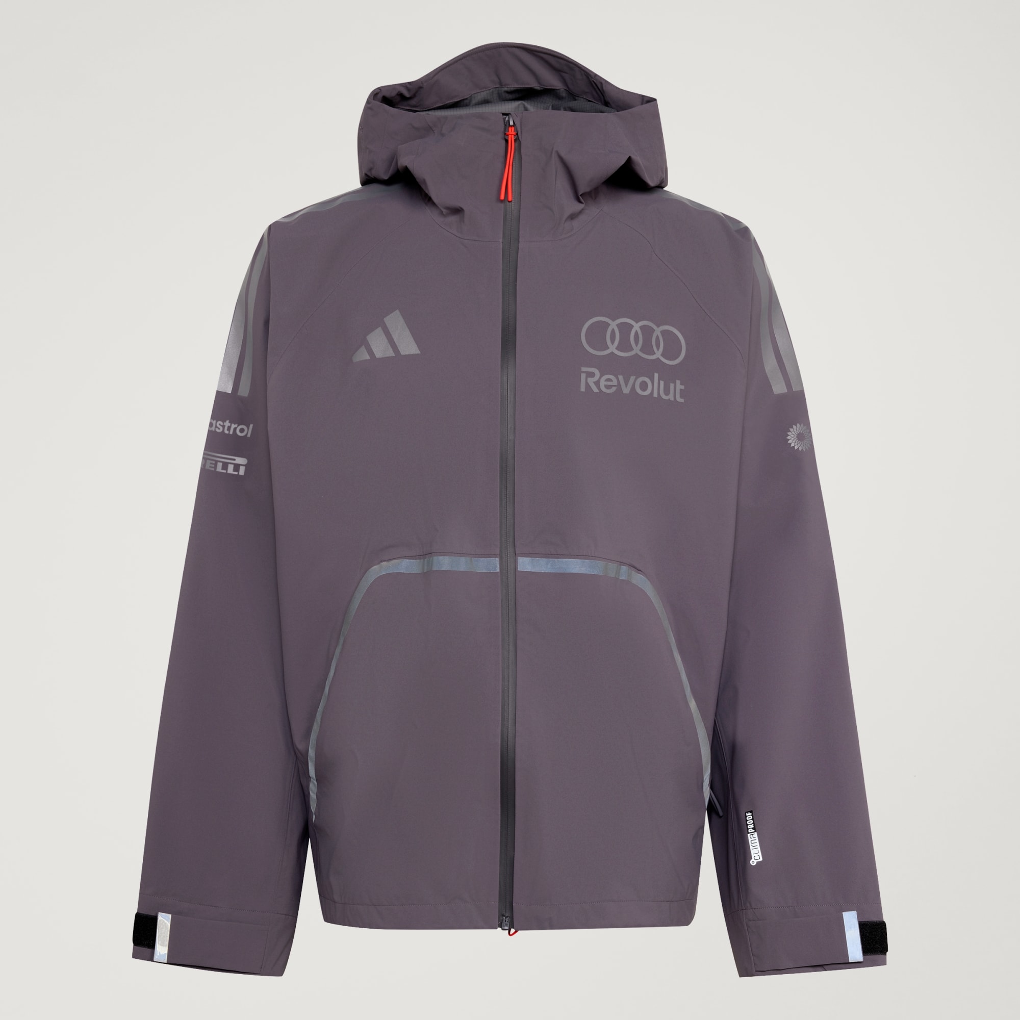 Rinde homenaje a los ingenieros que mantienen todo en marcha con la chaqueta impermeable Audi Revolut F1® Team Engineers & Marketing. Diseñada para quienes se mueven en el entorno dinámico del circuito, esta chaqueta encarna el espíritu de precisión y rendimiento. La tecnología Climaproof protege frente a las inclemencias del tiempo y favorece la evacuación del sudor para un rendimiento seco, cómodo y sin restricciones. Gracias a sus propiedades impermeables y transpirables, está preparada para aislarte de los elementos. La cremallera bidireccional permite una ventilación rápida y un estilo versátil. La capucha ajustable en dos direcciones y la caña alta ofrecen mayor protección, mientras que los ajustes en puños y dobladillo aportan versatilidad ante cambios de clima. Los dos bolsillos frontales con cremallera mantienen tus objetos esenciales seguros. Con los colores y el logotipo de Audi Revolut F1® y el clásico logotipo de adidas en la manga, esta chaqueta representa el punto de encuentro entre innovación y tradición.