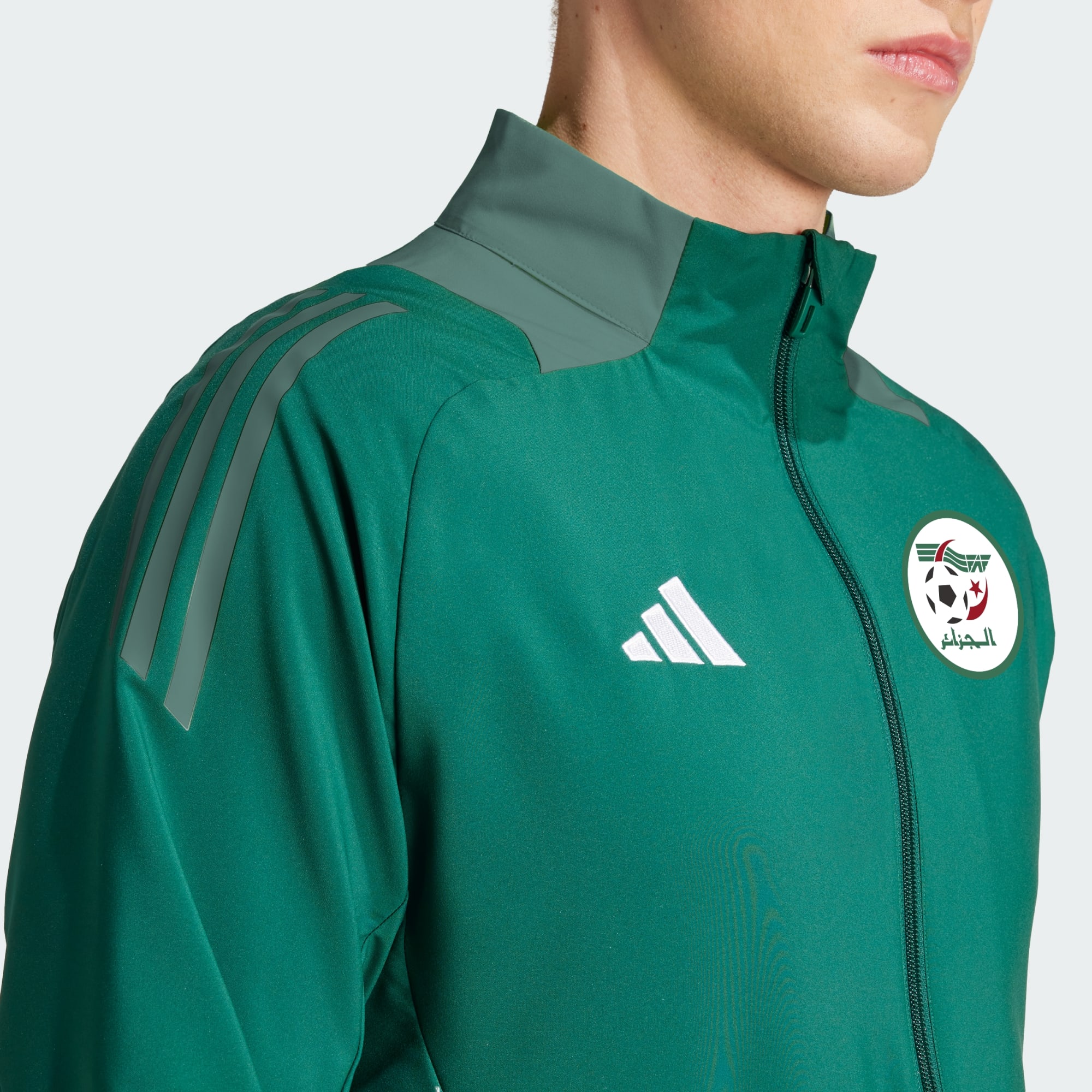 Esta chaqueta de fútbol adidas es como la que visten las estrellas de la selección argelina para mostrarse como un equipo unido fuera del terreno de juego. El forro de malla, el suave y la tecnología transpirable AEROREADY te ofrecen una comodidad increíble en cuanto te la pones. El escudo bordado en el pecho deja bien claro cuál es tu combinado favorito.
