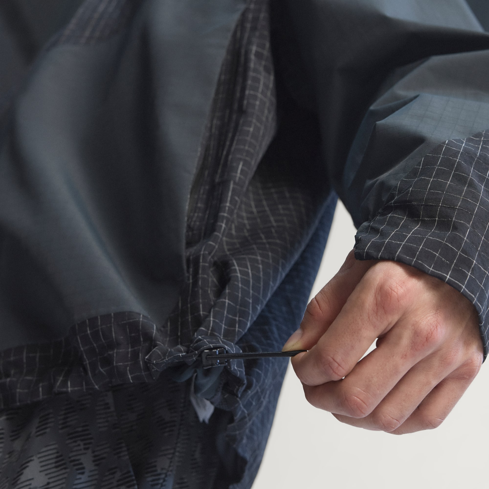 - Dobladillo ajustable con goma elástica y tope