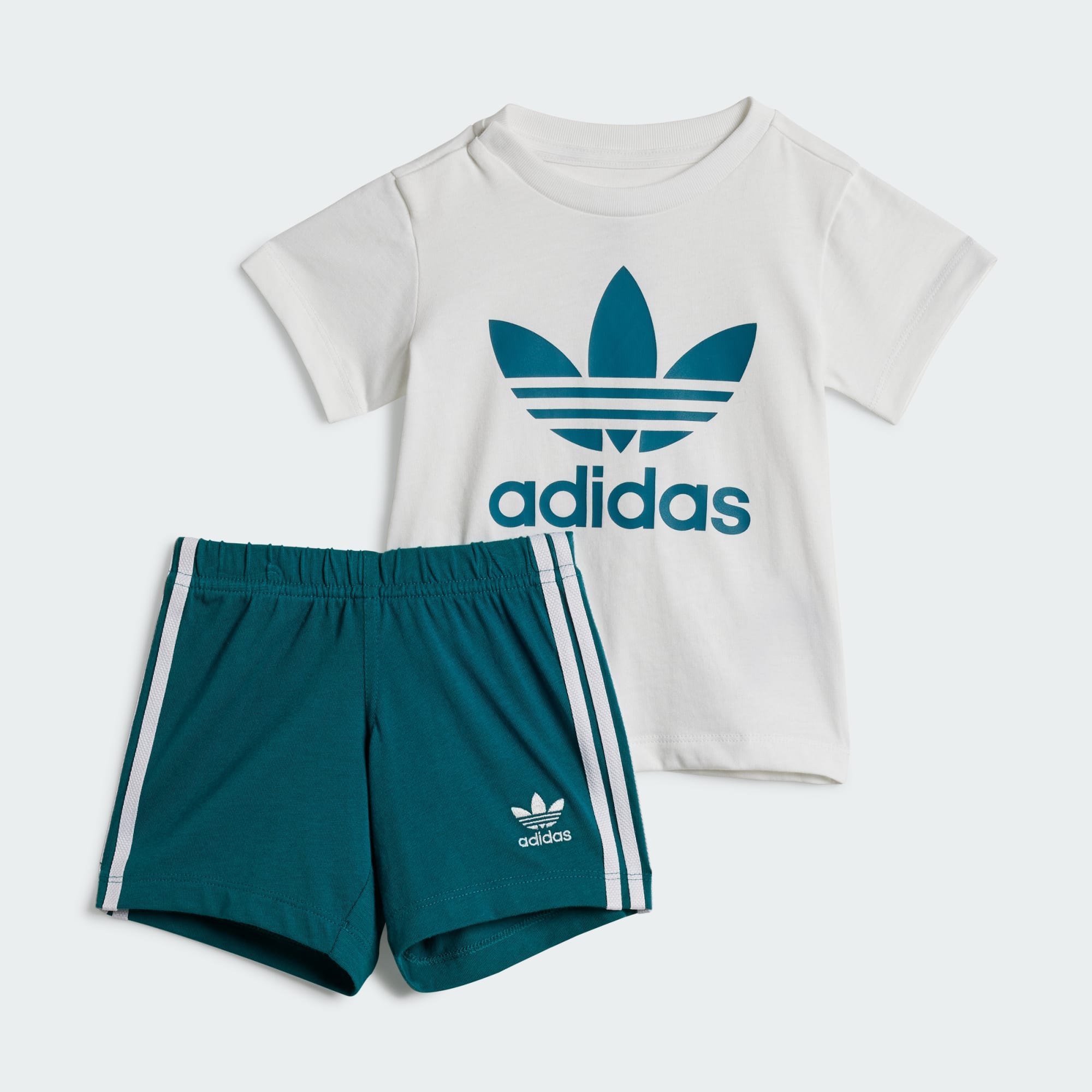 La combinación ideal para jugar sin parar. Prepara a tu peque para cualquier aventura con este conjunto de camiseta y pantalón corto creado por adidas. El logotipo del trébol, las 3 bandas y el cuello redondo de canalé le confieren un estilo deportivo clásico. La cintura elástica con cordón, el cierre de botones a presión en el hombro y el tejido de punto le ofrecen una gran comodidad. El algodón de este producto procede de Better Cotton. Better Cotton se obtiene a través de un modelo de cadena de custodia llamado balance de masas. Esto significa que Better Cotton no es físicamente rastreable a nivel de productos finales. Más información en: https://bettercotton.org/who-we-are/our-logo.