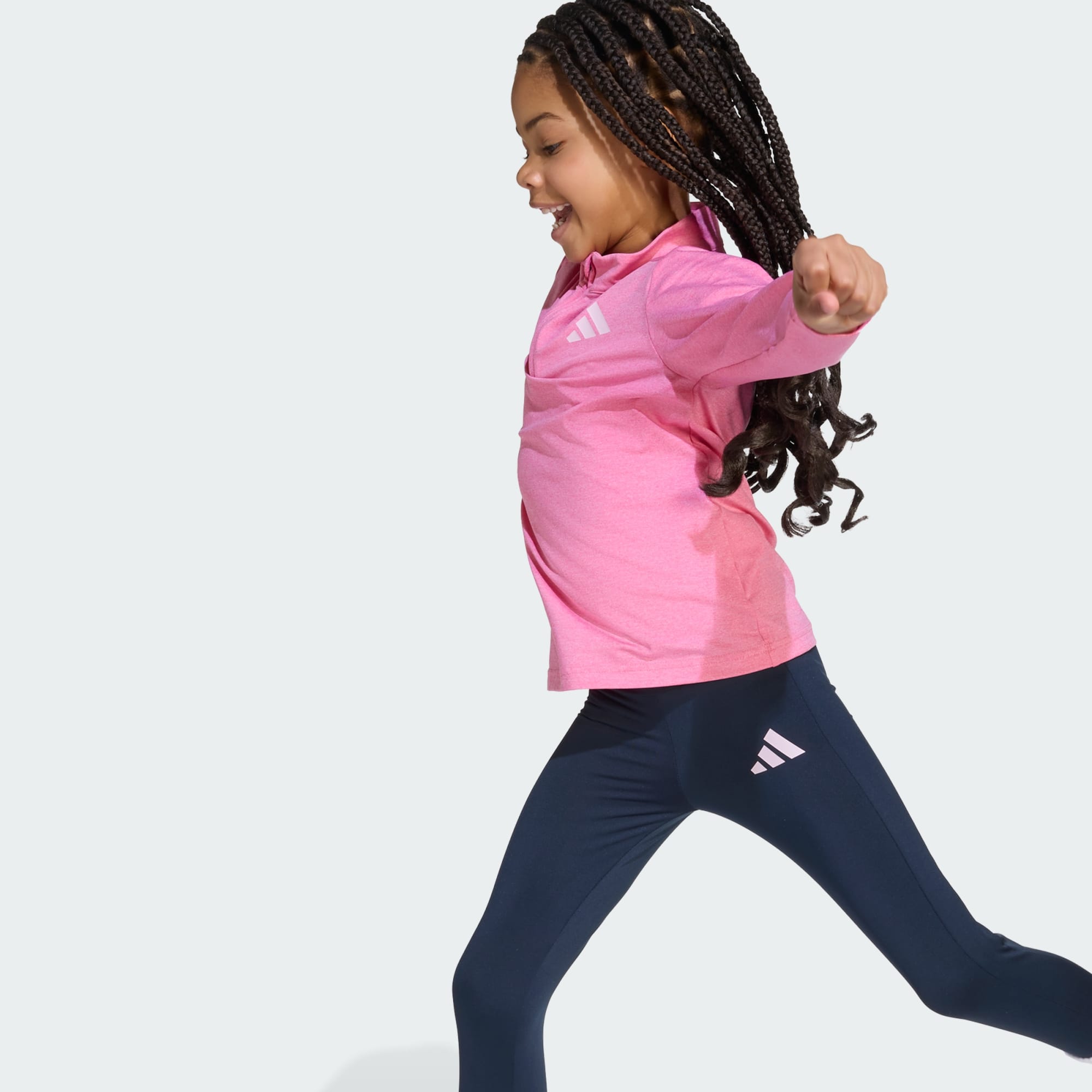 Este conjunto deportivo adidas hará que tu pequeña lo dé todo dentro y fuera del campo. La camiseta técnica de manga larga con cremallera hasta el pecho ofrece el equilibrio perfecto entre comodidad y estilo gracias a su tejido suave y transpirable CLIMACOOL. Combinado con unas mallas a juego, este conjunto garantiza que esté lista para cualquier aventura fácilmente y con total confianza. CLIMACOOL aleja el sudor de la piel, manteniéndola fresca y seca para minimizar las distracciones y optimizar tu rendimiento. CLIMACOOL te ayuda a gestionar el sudor con materiales que expulsan la humedad rápidamente. Sus fibras de secado rápido te proporcionan una agradable sensación de frescura.