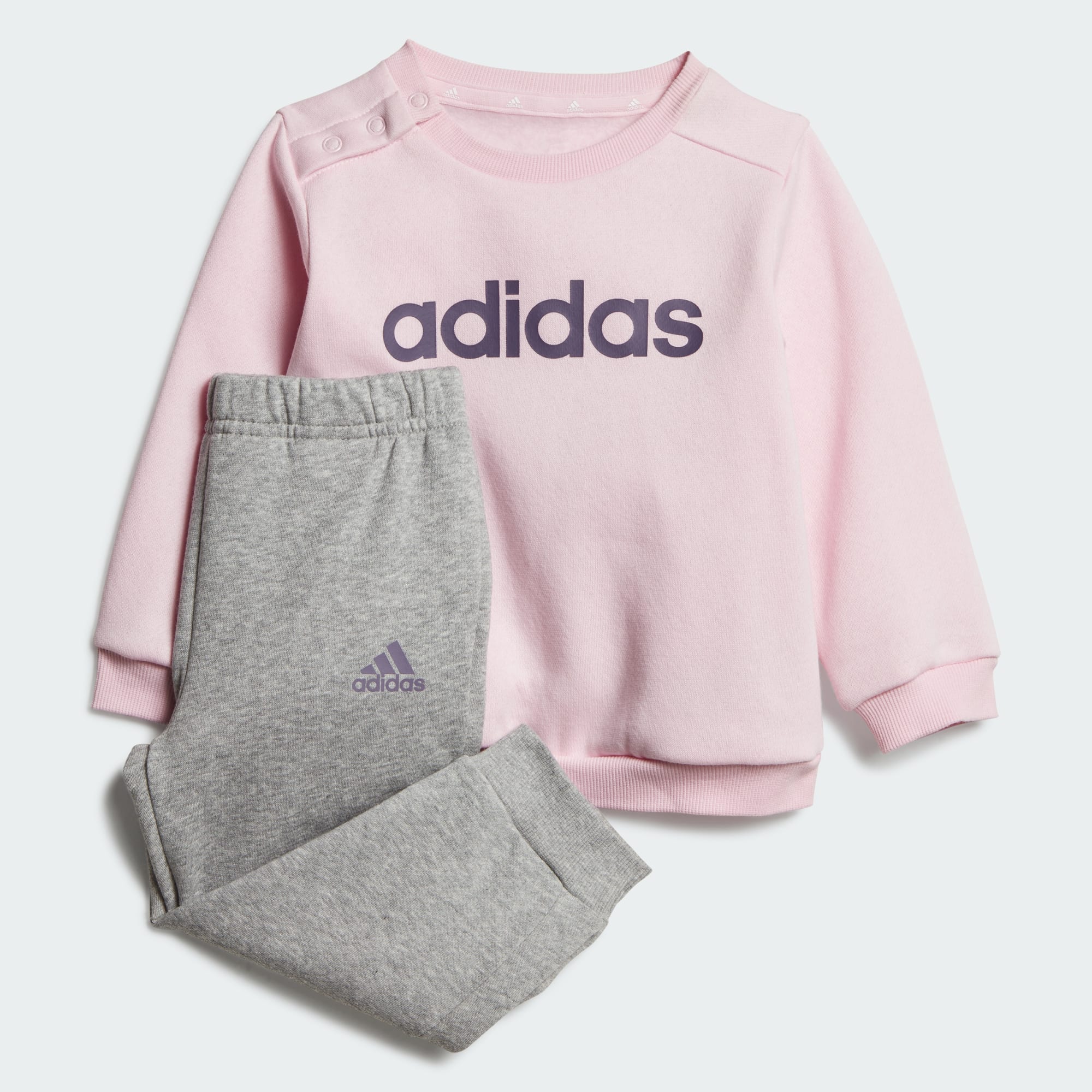 Equipa a tu peque para la acción de cada día con este conjunto adidas. Tanto la sudadera como el pantalón se han confeccionado en una mezcla de algodón suave con puños de canalé que le ofrecen un ajuste más cómodo. Los botones a presión en el hombro te permiten ponérselo y quitárselo fácilmente. Este producto contiene al menos un 70% de materiales reciclados y renovables.