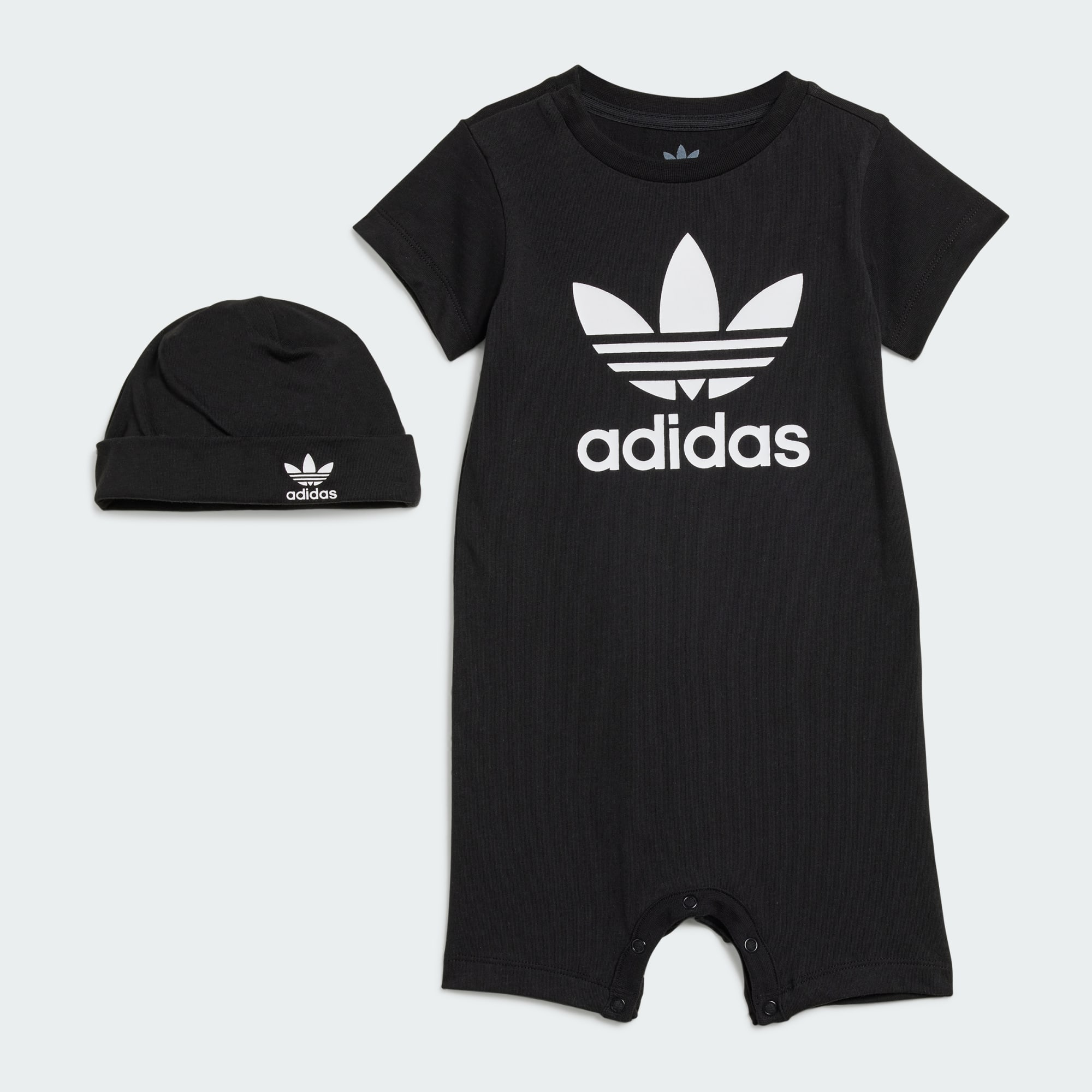 El regalo perfecto. Este conjunto para peques con estilo combina un diseño cómodo e informal con el auténtico sello deportivo de adidas. El mono presenta un tejido de algodón suave, un corte holgado y un cierre de botones a presión en la entrepierna para poner y quitar fácilmente. El conjunto se completa con un gorro a juego que mantendrá la cabeza del bebé abrigada cuando salga a jugar al parque o se acurruque en el sofá. El algodón de este producto procede de Better Cotton. Better Cotton se obtiene a través de un modelo de cadena de custodia llamado balance de masas. Esto significa que Better Cotton no es físicamente rastreable a nivel de productos finales. Más información en: https://bettercotton.org/who-we-are/our-logo/