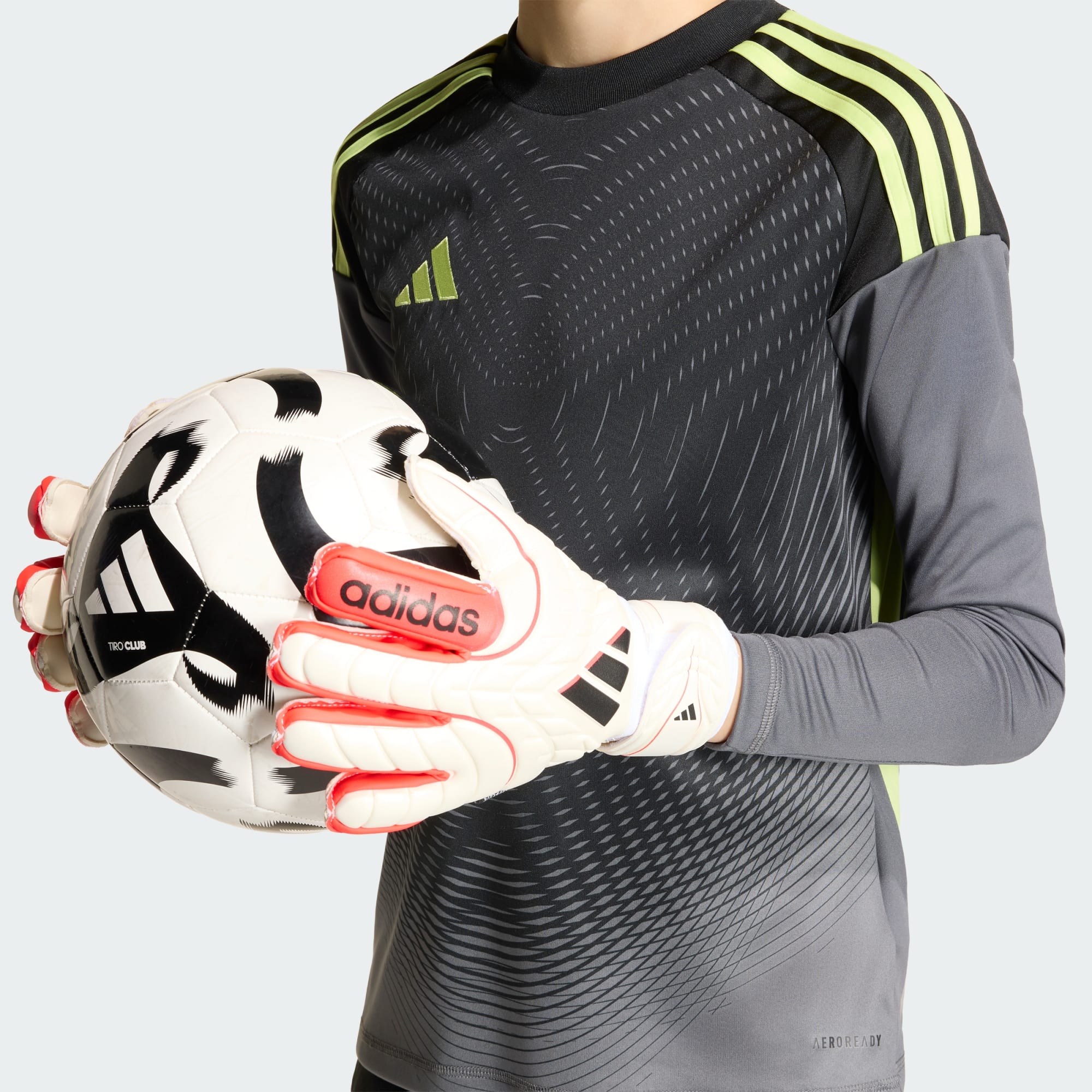 En el mundo del fútbol, la precisión es la clave. Los guantes de portero COPA Match Fingersave están diseñados para que los jóvenes guardametas mantengan la concentración en todo momento. Diseñados con características innovadoras, estos guantes ayudan a asegurar las paradas y detener los disparos. Incluyen una palma de látex Soft Grip Pro que garantiza un agarre fiable y duradero en diferentes condiciones meteorológicas. La banda elástica ofrece un ajuste seguro y la muñequera de media vuelta aporta un extra de comodidad. La tecnología Fingersave incorpora varillas que refuerzan los dedos y resisten la presión para que pueda desviar los disparos más potentes con seguridad. Por su rendimiento, se convertirán en el compañero ideal de tu peque sobre el césped. El diseño de corte positivo proporciona más superficie de contacto con el balón para brindar mayor precisión a cada movimiento. El dorso de malla de canalé y látex aporta mayor sujeción para que las jóvenes promesas se desenvuelvan con confianza. Estos guantes lo tienen todo para que desvíe, intercepte y detenga los balones que llegan a su portería. adidas hace que cada parada se convierta en un momento de destreza y valentía excepcionales.