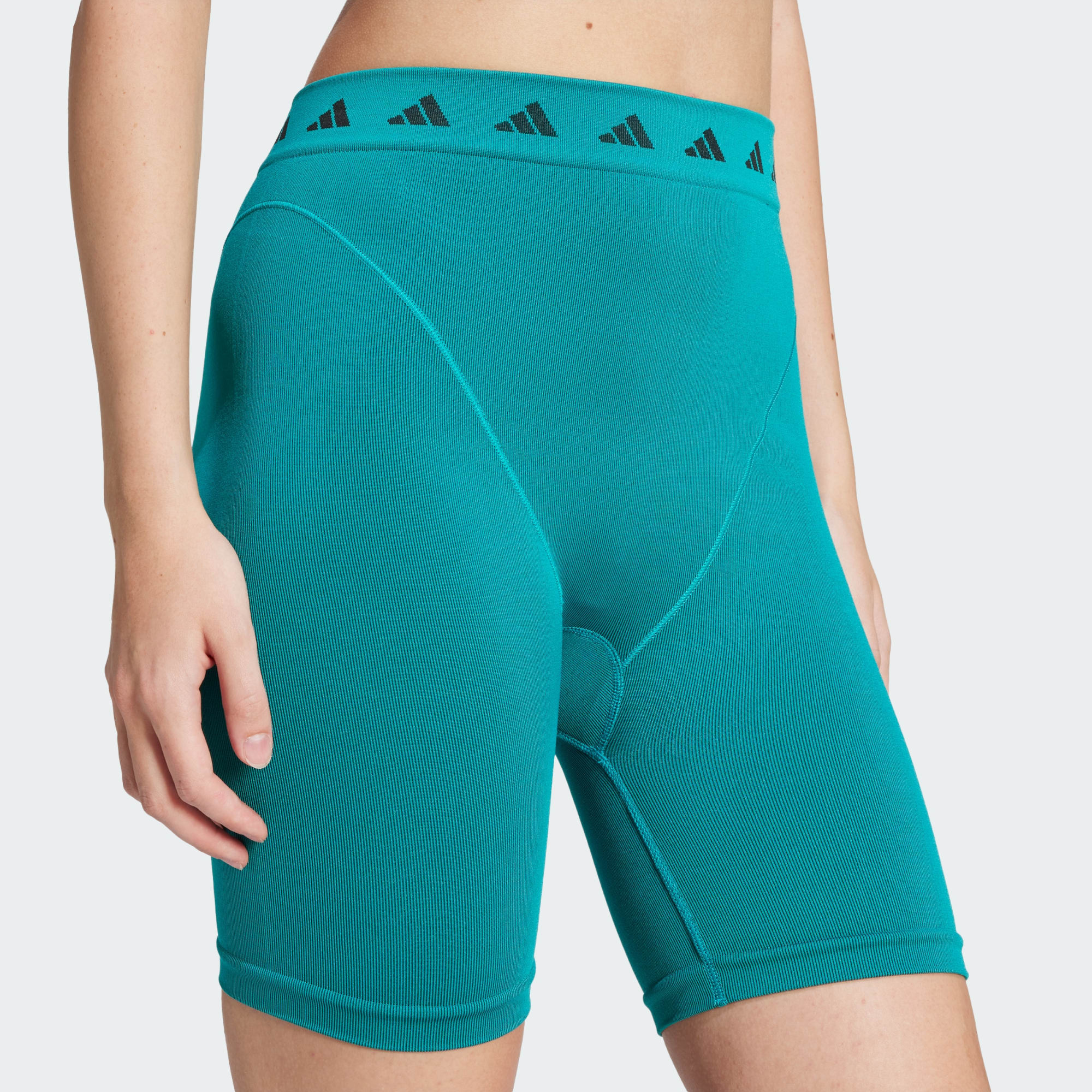 Estas mallas cortas de adidas Equipment son una prenda que no puede faltar en tu vestuario veraniego. Se han confeccionado en un tejido técnico suave y elástico que se adapta a tu silueta y acompaña todos tus movimientos. Su cintura de talle alto y su corte ajustado estilizan tu figura, permitiéndote transitar con naturalidad de tus planes del día a los de la noche. Combínalas con tu camiseta o top favoritos y presume de look informal.