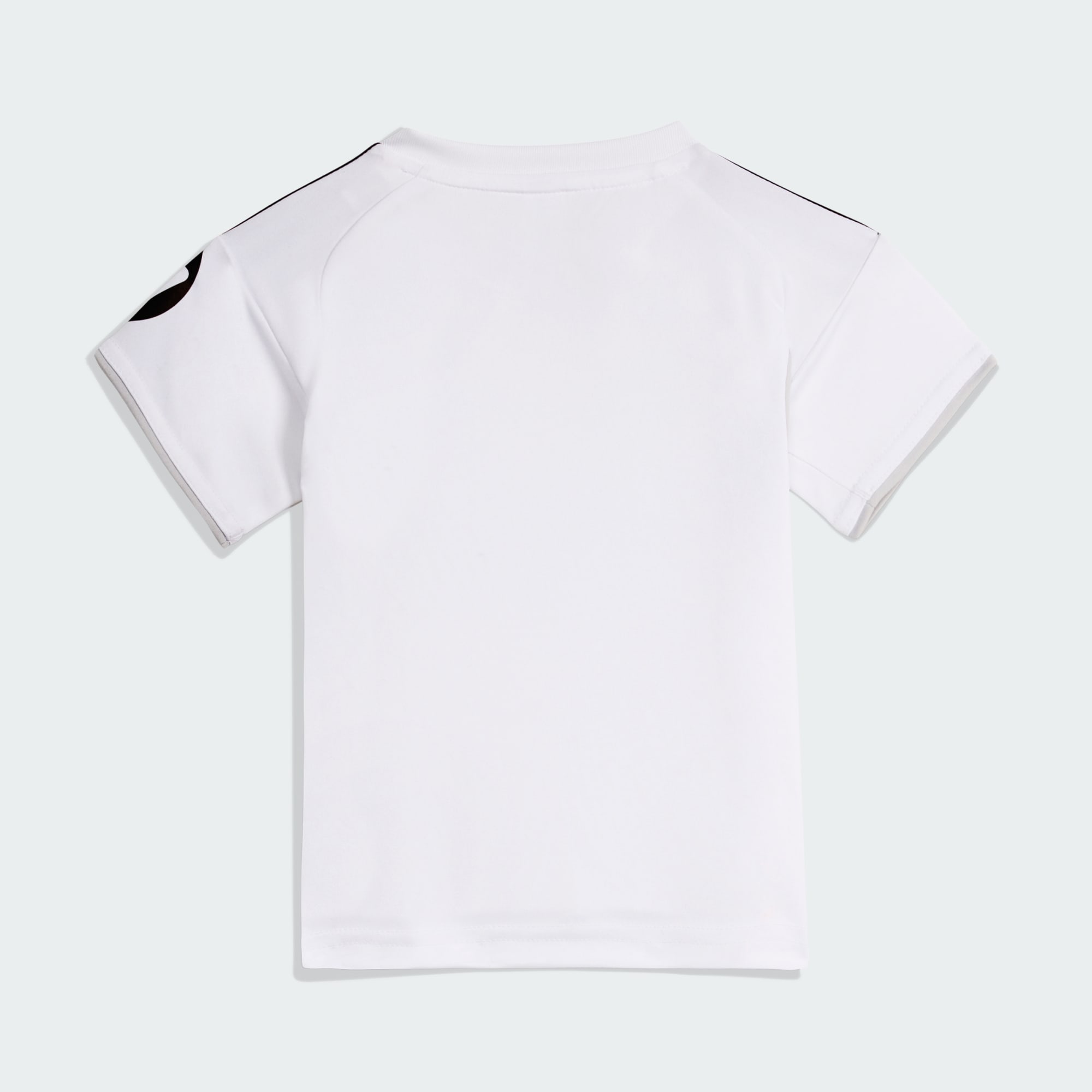 Rinde homenaje a la emblemática casa del Real Madrid con este conjunto adidas de tamaño reducido.