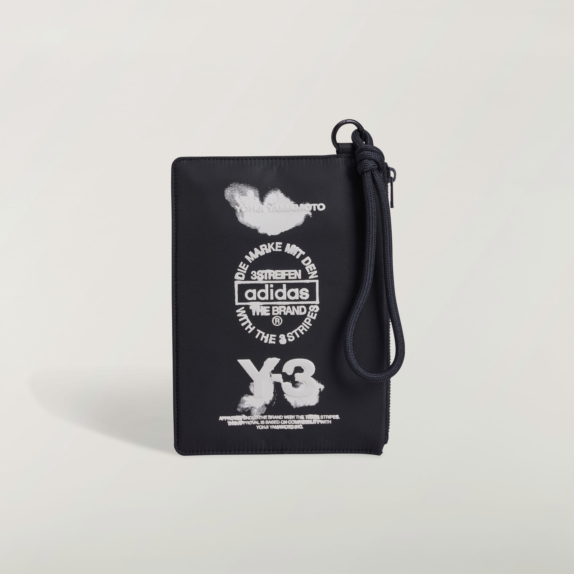 Un monedero Y-3 con una combinación exclusiva de estampados en relieve y serigrafiados