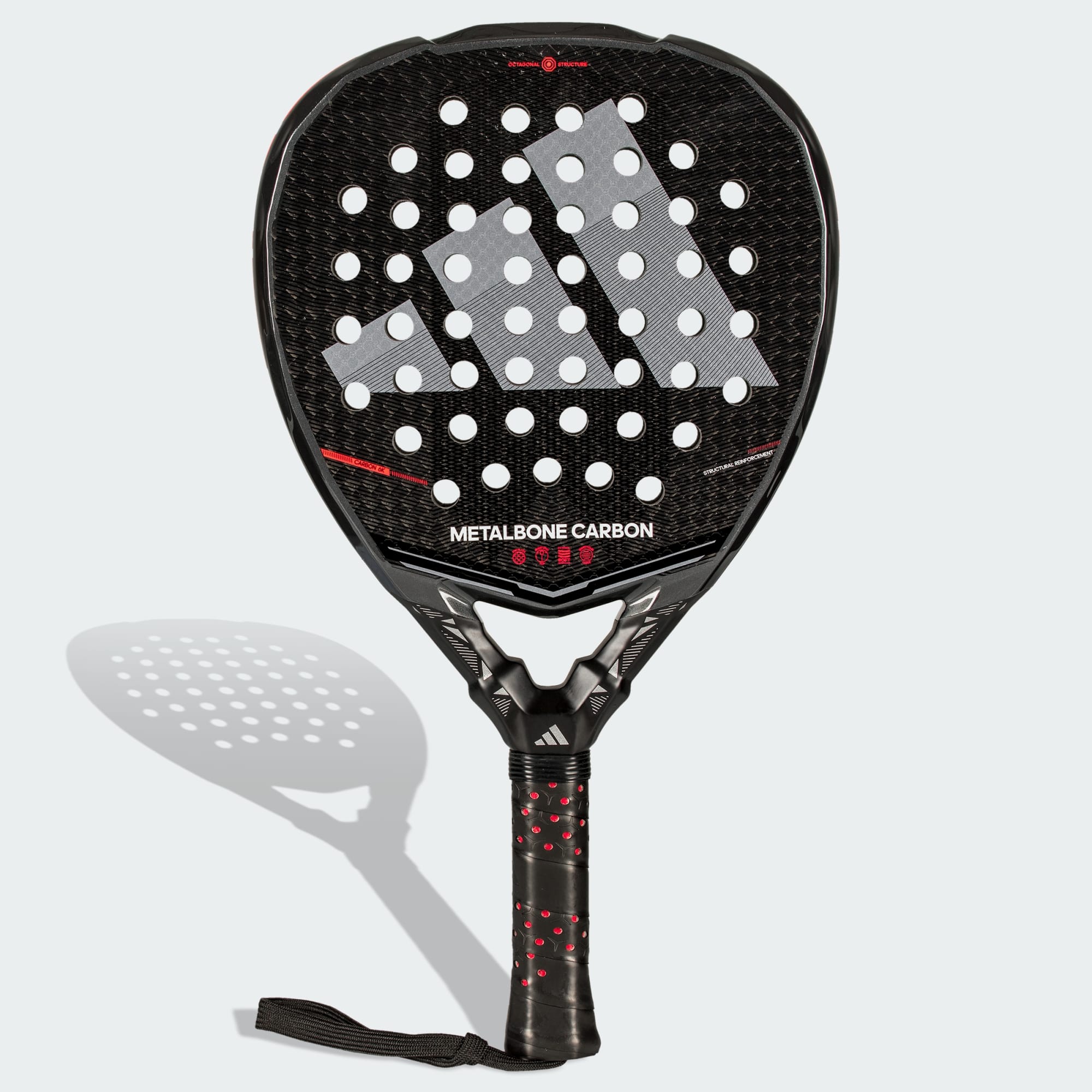 La pala de pádel Metalbone Carbon 2026 de adidas está diseñada para deportistas profesionales o que juegan a menudo, que buscan una equipación de alto rendimiento. Esta pala, fabricada con fibra de carbono de 6K, ofrece tanto control como potencia y te ayuda a adaptarte a todo tipo de situaciones durante el partido. Presenta una estructura octogonal que reduce la torsión para que golpees la bola con más precisión. Además, la empuñadura Extra Power Grip y el diseño Low Poly de la estructura incrementan la inercia y la rigidez, para que golpees con más fuerza. La tecnología Spin Blade Decal ofrece un control más preciso del giro que se aplica a la pelota, para que golpees de forma tanto variada como consistente. Esta pala cuenta con una forma de diamante muy equilibrada que resulta idónea para el juego ofensivo. La goma EVA de baja densidad te permite golpear la bola con fiabilidad y comodidad durante todo el partido, por lo que esta pala es un fichaje espectacular.