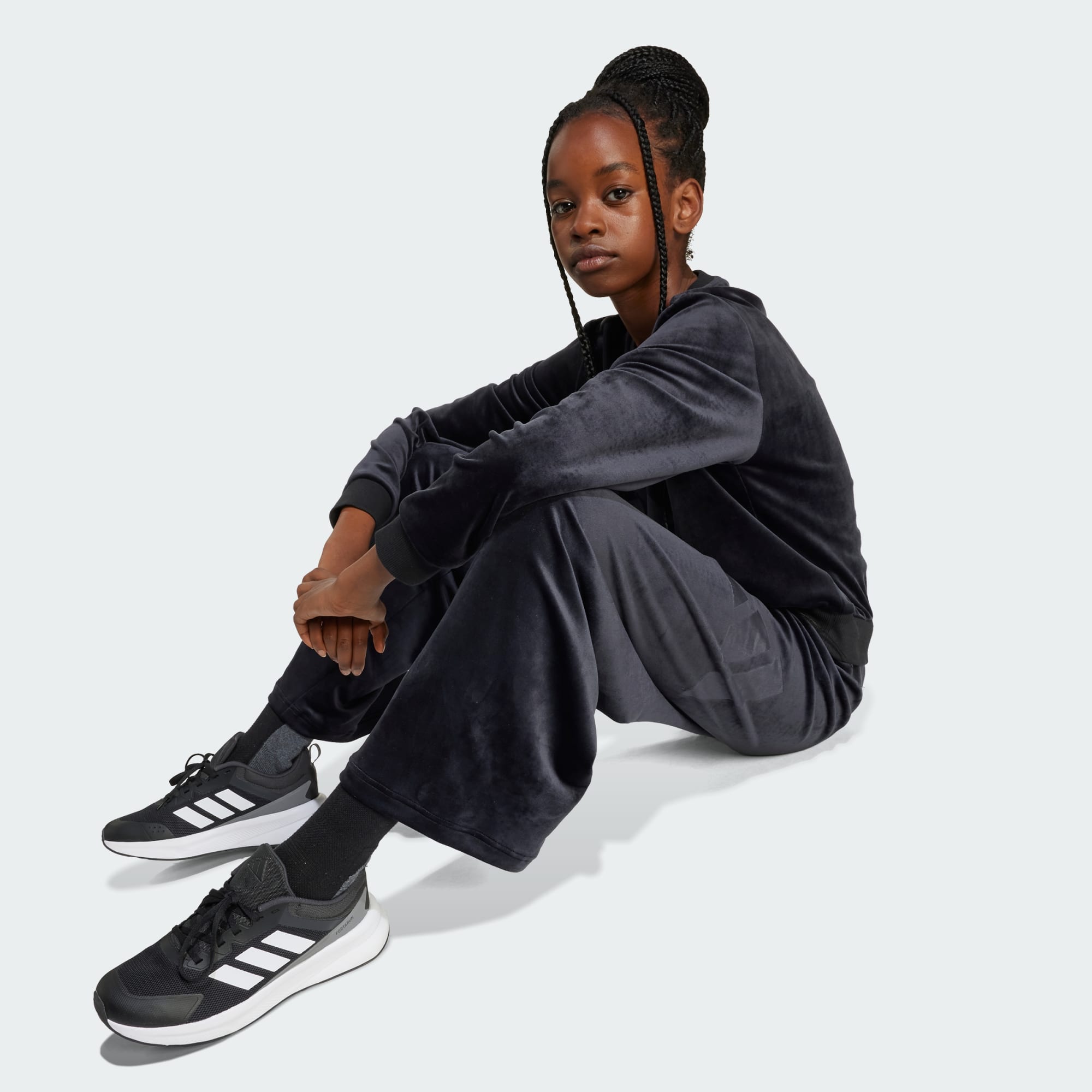 Estos pantalones adidas juveniles combinan un aire desenfadado con un toque chic, ideales para cualquier plan. La pernera ancha crea una silueta relajada que combina a la perfección con una camiseta ajustada o una sudadera. El tejido de terciopelo añade un toque sofisticado al conjunto. El discreto logotipo grabado en la pernera aporta un toque deportivo al diseño estilizado.