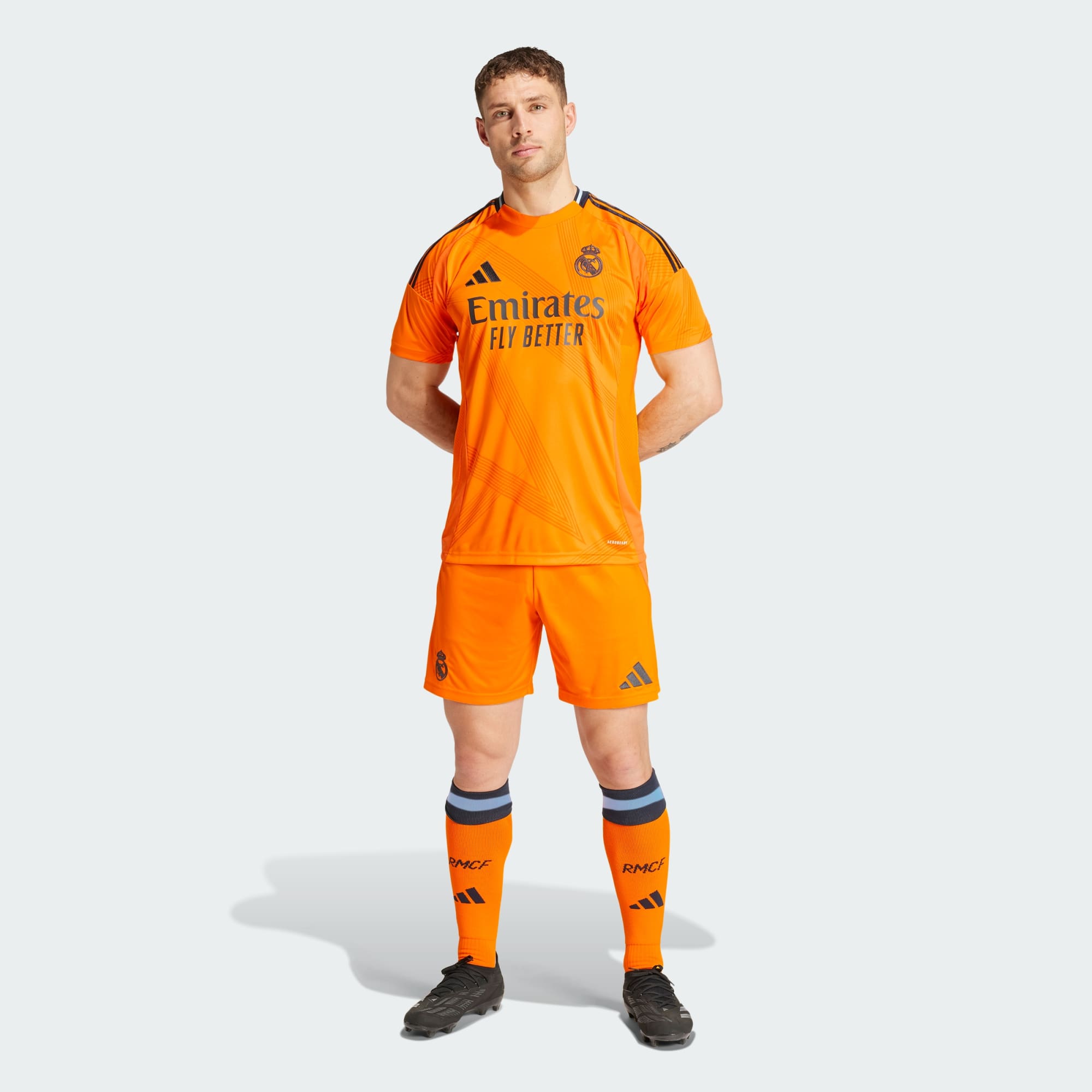 Esta nueva camiseta de la segunda equipación del Real Madrid para la temporada 24/25 luce un diseño en tonos naranjas con estampados abstractos y detalles en azul metalizado que aporta una gran comodidad y te hace destacar en los partidos fuera de casa.