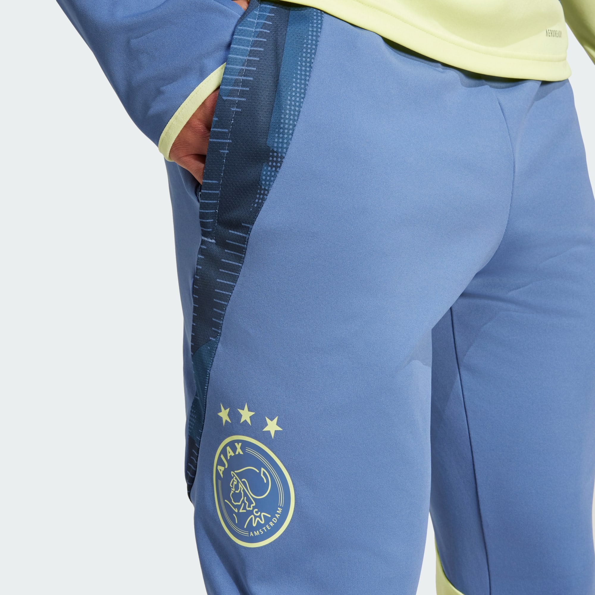 Este pantalón de la colección Tiro 24 de adidas es idéntico al que visten los jugadores del Ajax en sus sesiones preparatorias en el terreno de juego. Diseñado para los entrenamientos más exigentes, presenta un corte ajustado que favorece los movimientos y la tecnología transpirable AEROREADY, que mantiene la piel seca para que nada te distraiga. El escudo del club termotransferido en la pernera subraya tu fuerte conexión con la rica tradición futbolística del equipo holandés. Este producto se ha fabricado con un 100% de materiales reciclados. Utilizando materiales reciclados, reducimos los residuos, nuestra dependencia de los recursos finitos y la huella que generan los productos que fabricamos.