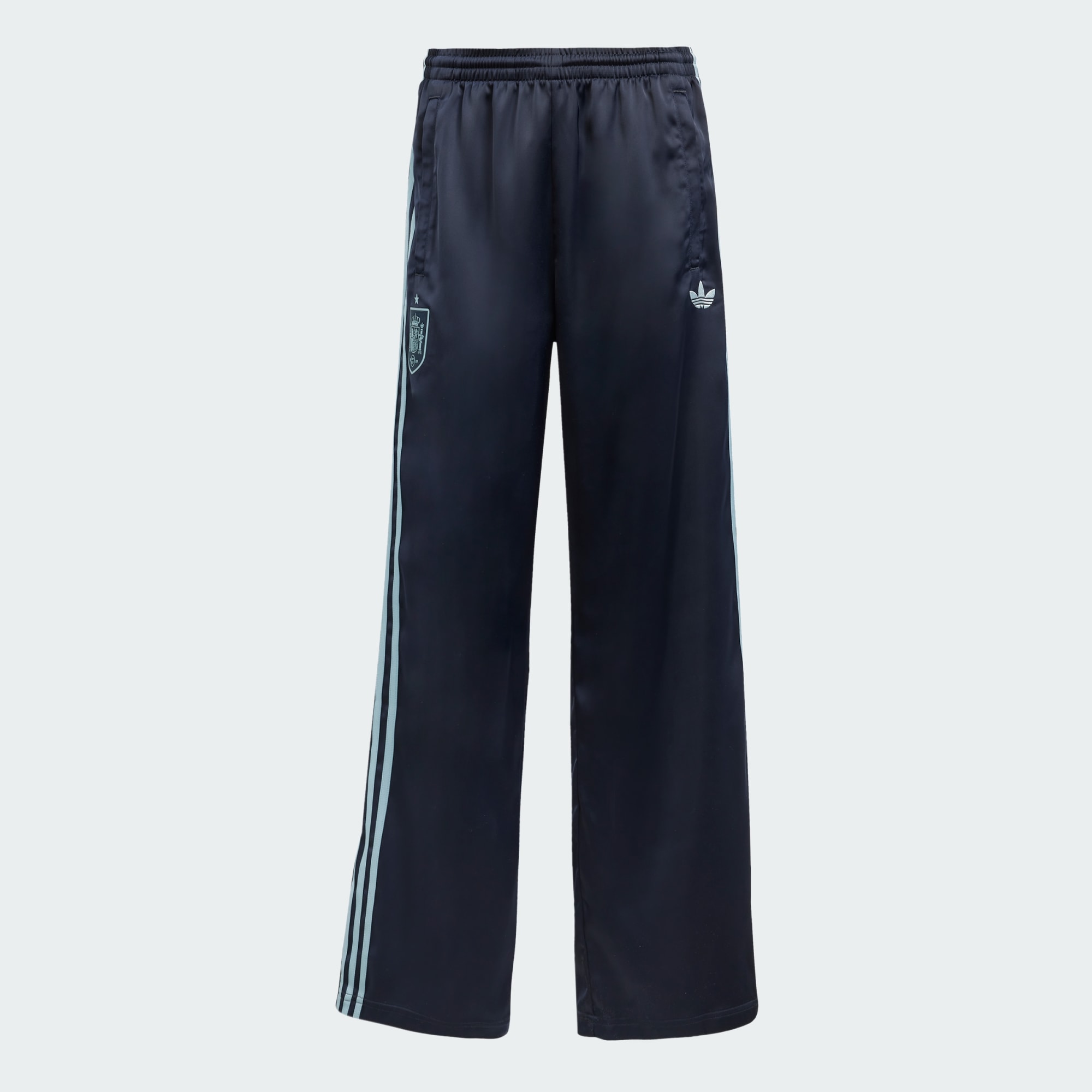 Este pantalón presenta un suave tejido de raso y un corte holgado que te permiten animar a la selección femenina de España con total comodidad. Decorado con la preciada estrella, el escudo del combinado en la pernera refleja tu pasión por el fútbol. El trébol de adidas en la otra pernera le aporta un toque deportivo inconfundible.