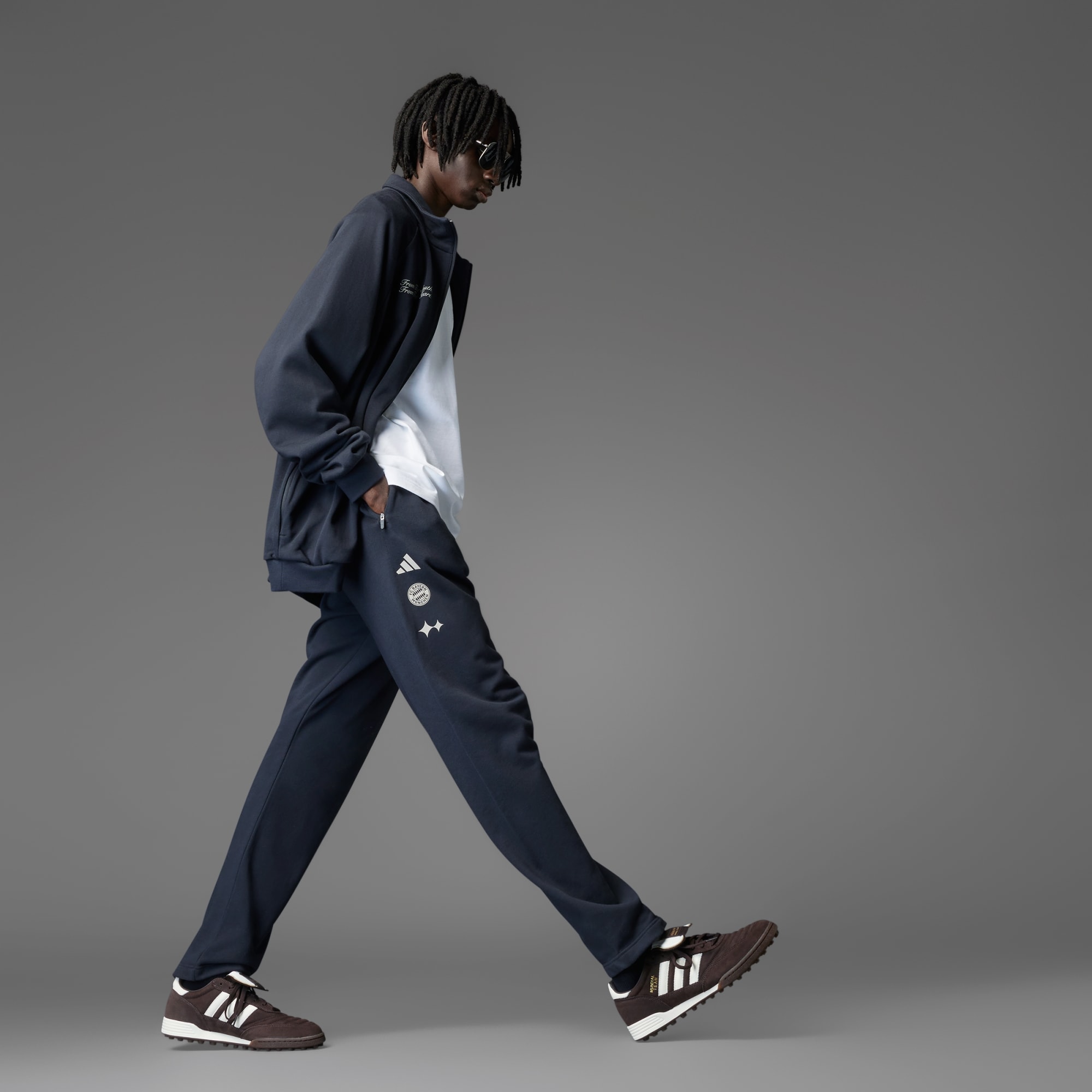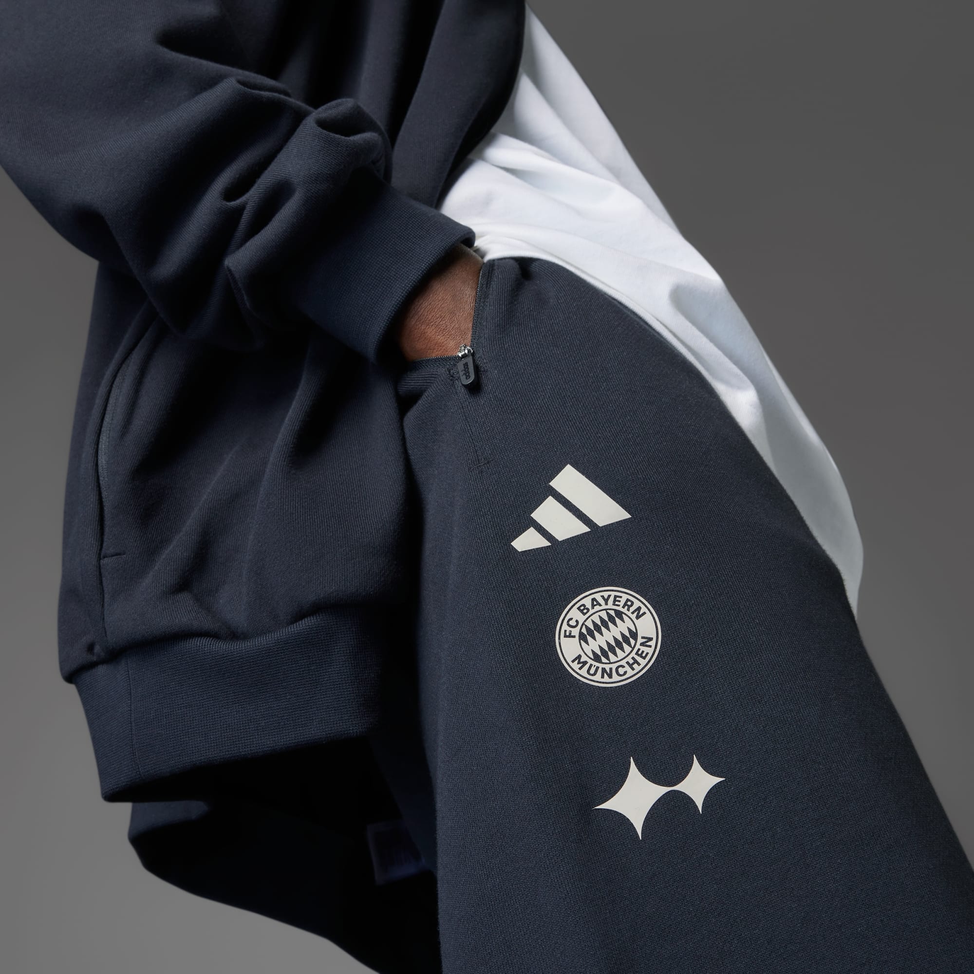 Muestra tus credenciales futbolísticas con un estilo que no pasa desapercibido. Este pantalón del FC Bayern forma parte de una colección exclusiva de adidas diseñada en colaboración con la firma de moda muniquesa, BSTN. Se ha confeccionado en un suave tejido de felpa que te envuelve en comodidad mientras disfrutas de tu pasión por el deporte rey. El escudo del club y los logotipos de BSTN y las 3 bandas ponen el broche final.