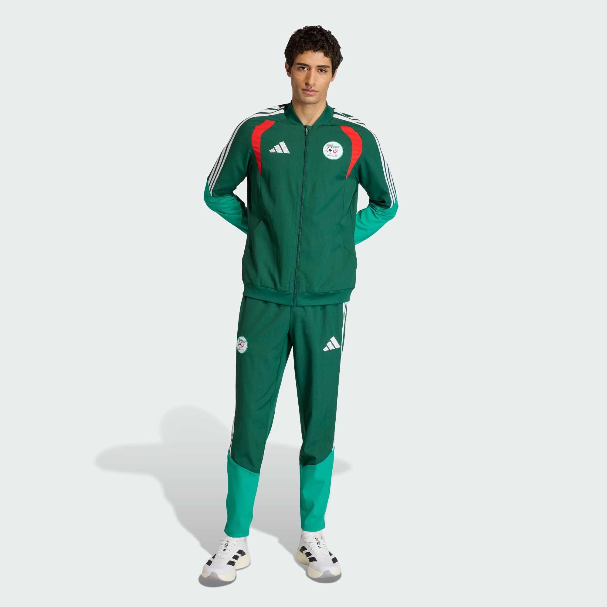 Salta al campo con orgullo con nuestro Pantalón Presentación Argelia 26. Inspirado en los diseños tradicionales argelinos, combina herencia y rendimiento moderno. Tanto si te preparas para un partido como si disfrutas de un día tranquilo, este pantalón se adapta a ti. Confeccionado en material ligero, ofrece comodidad y libertad de movimiento, ideal para entrenar o para tu día a día. El logotipo de adidas y las 3 bandas añaden un toque de estilo icónico que te hace lucir tan bien como te sientes. Su corte clásico y la cintura de tiro medio aportan una sensación relajada y segura. El cierre de cordón ajustable facilita la personalización del ajuste, mientras que el tejido resistente aporta transpirabilidad al diseño. Fabricado con materiales avanzados, este pantalón es una opción imprescindible para los entusiastas del fútbol que valoran tanto el estilo como la funcionalidad. Luce el espíritu de Argelia y potencia tu juego con adidas.