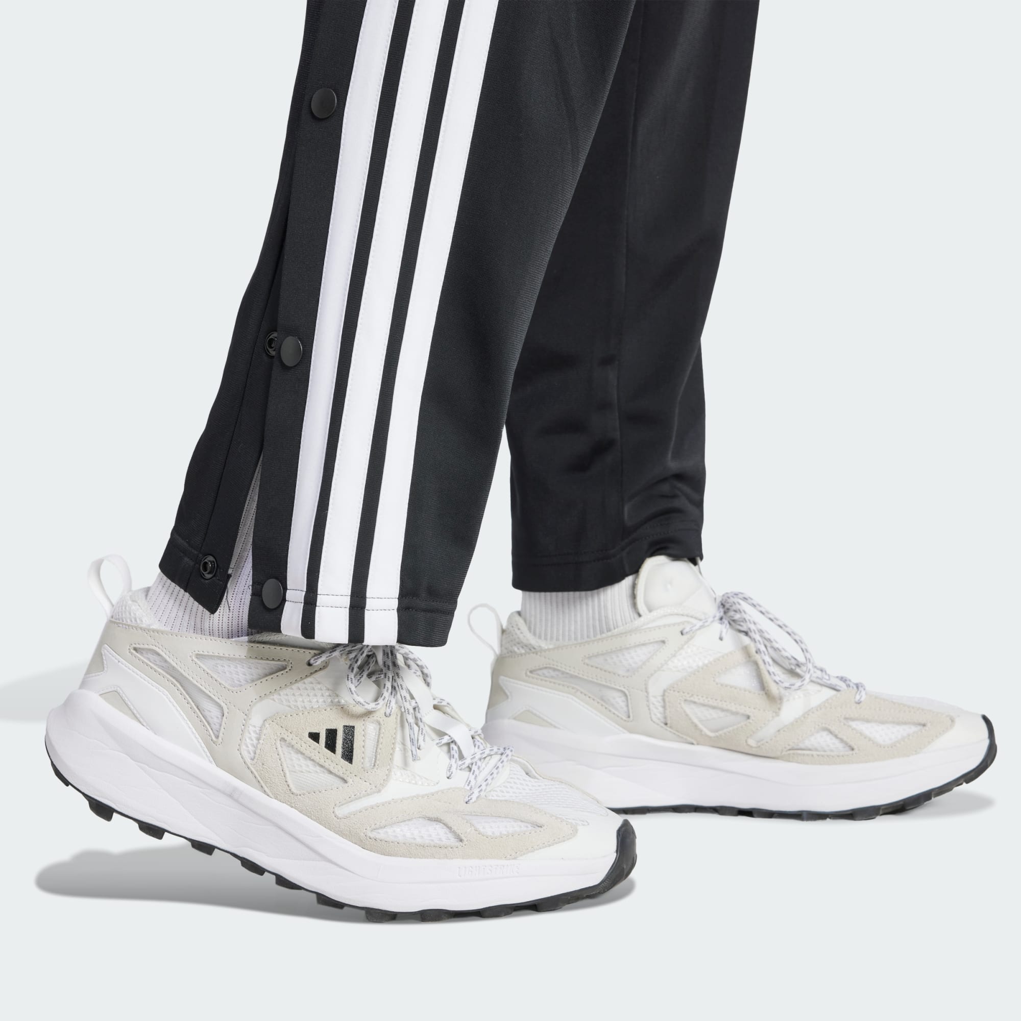 Tan deportivos como elegantes, estos pantalones adidas están preparados para seguir el ritmo de tu ajetreada vida. Su suave tejido de punto tiene un tacto liso deportivo. Los paneles de bloques de color y las 3 bandas laterales se adornan con botones a presión que te permiten darle un toque personal de ajuste y estilo.