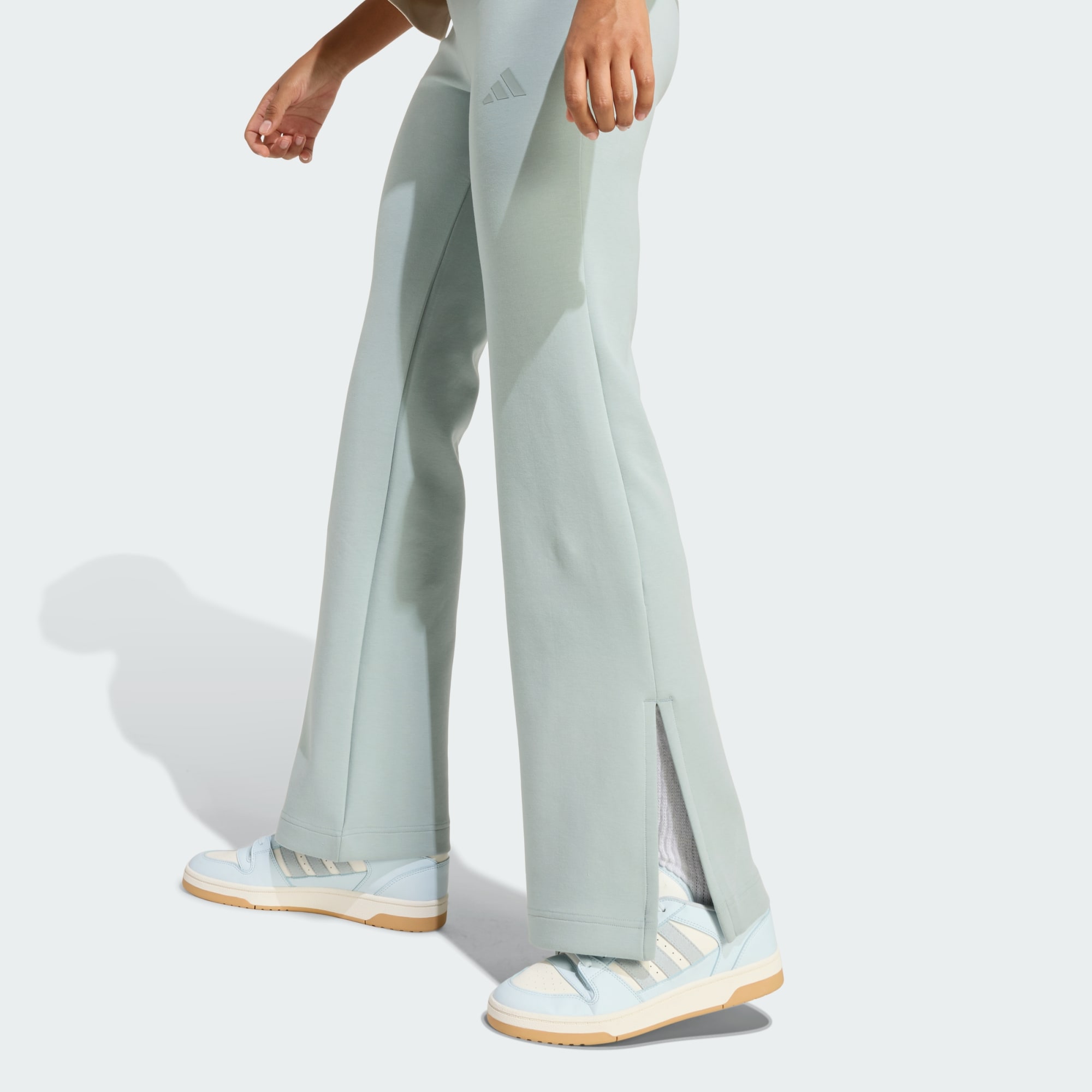 Este pantalón acampanado adidas es ideal para relajarte por todo lo alto. El tejido aterciopelado garantiza el máximo confort, mientras que el corte ajustado, la cintura de medio tiro y los bajos acampanados crean una silueta favorecedora. La cinta elástica interna posibilita el ajuste ideal, y las aberturas laterales aportan un toque de estilo.