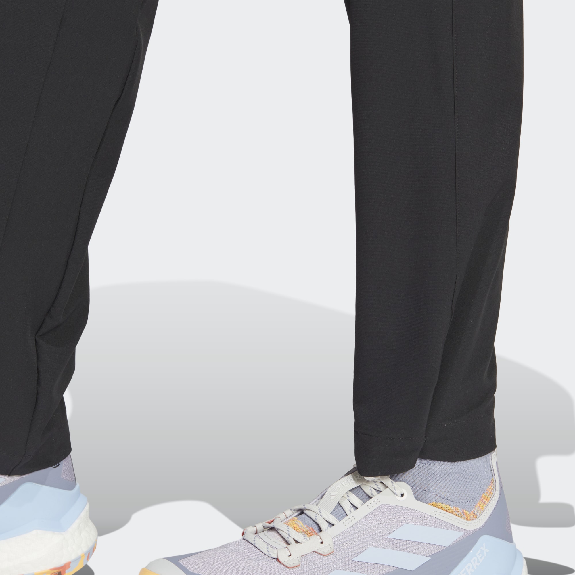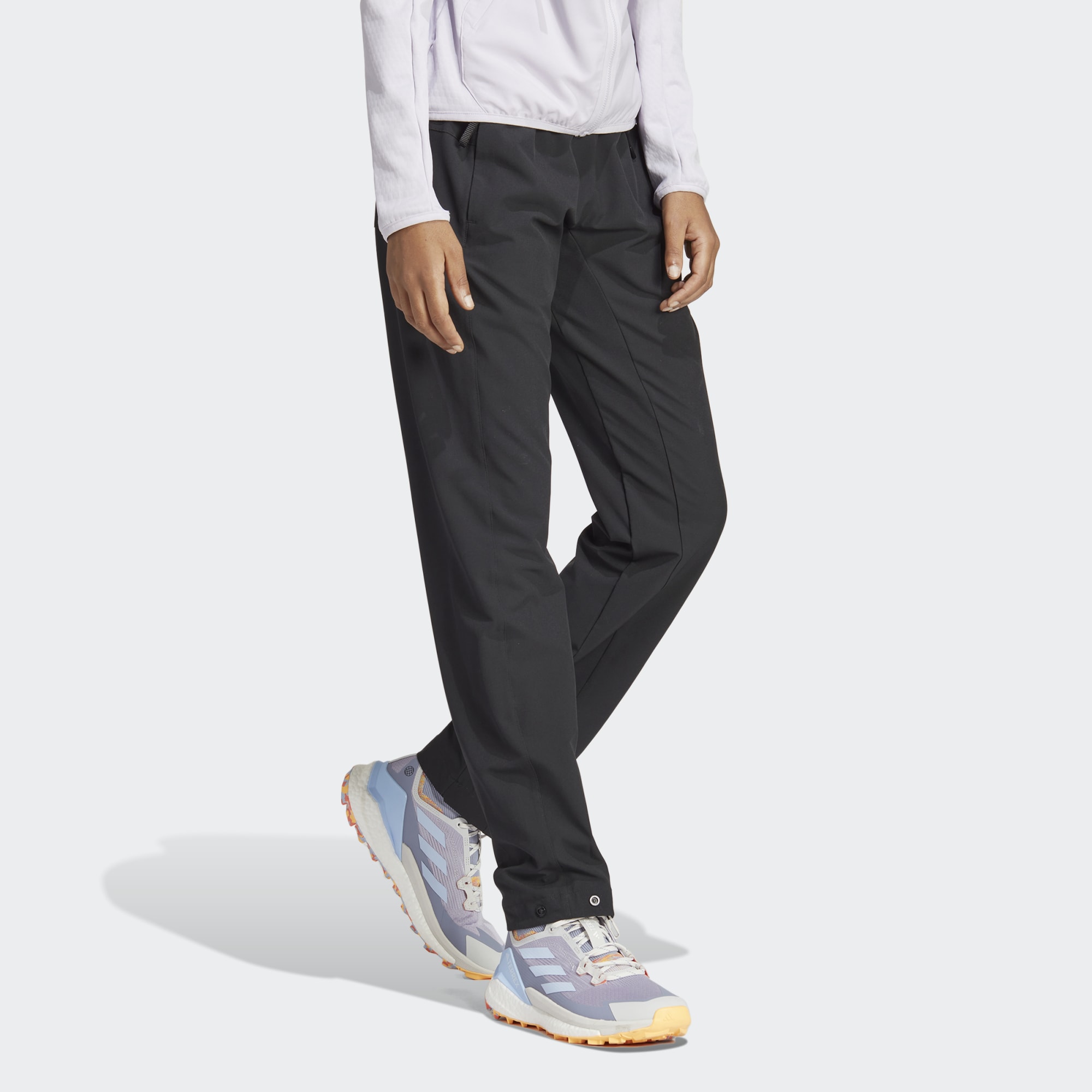 Prepárate para explorar la montaña. Este pantalón de senderismo adidas combina un diseño elástico con puños ajustables para ofrecerte una total libertad de movimiento. Se ha confeccionado en un tejido ligero que te protege de las salpicaduras y la humedad superficial conforme avanzas a través de arbustos y atraviesas arroyos saltando de roca en roca. Los botones a presión en los puños te permiten ajustar la pernera a tu gusto tanto si llevas botas como zapatillas. Los bolsillos con cremallera te ayudan a llevar tus cosas de forma segura. Este producto se ha fabricado con diferentes materiales técnicos y contiene al menos un 70% de material reciclado. Su objetivo es plantear otra solución más que ayude a acabar con los residuos plásticos. CONOCE SU HUELLA DE CARBONO: Hemos tenido en cuenta todas las etapas del ciclo de vida en la metodología de cálculo de la huella de carbono de este producto, basándonos en la talla prototipo de adidas. De este modo, hemos medido su huella de carbono (CO2e) desde la extracción de la materia prima, el procesamiento, la producción y el ensamblaje, el embalaje, el transporte y el uso, hasta el final de su vida útil. Este proceso se ajusta a la norma internacional ISO 14067. Para saber en qué consiste el cálculo total de la huella de carbono de un producto y cómo la medimos, copia el siguiente enlace y pégalo en tu navegador: https://www.adidas.com/go/campaign/carbon-footprint