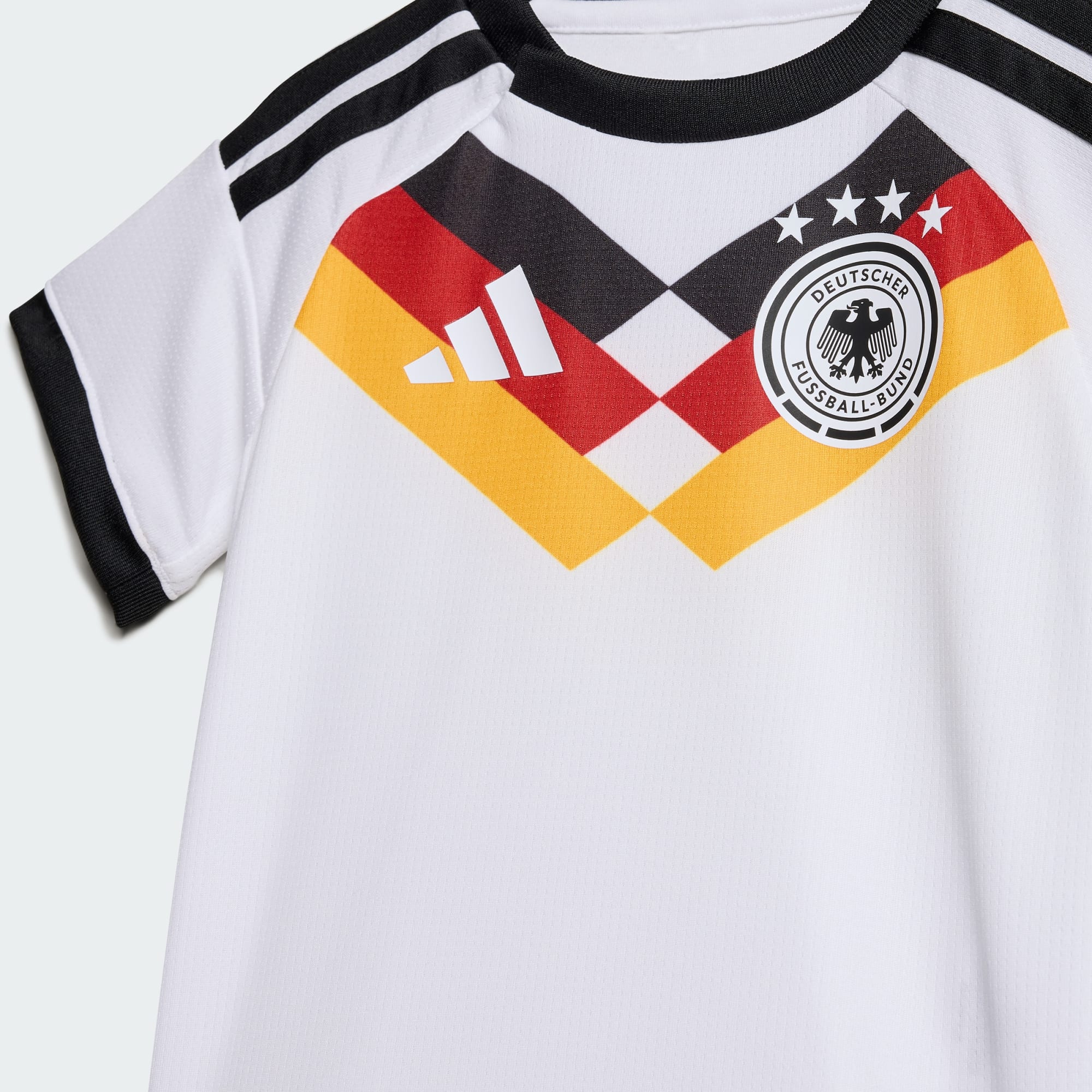 La primera equipación de Alemania 26 viste a los seguidores más pequeños con comodidad y un estilo llamativo que muestra sin duda su apoyo a la selección alemana. Fabricado con los exigentes estándares de adidas, esta versión mini incorpora la tecnología Climacool para mantener una agradable sensación de frescor. Con fibras de secado rápido que aportan confort y frescura en todo momento. El cierre a presión facilita los cambios, mientras que el logotipo de adidas y el escudo de la DFB refuerzan el vínculo con la identidad futbolística alemana. Un acabado impecable para una equipación creada con mimo.