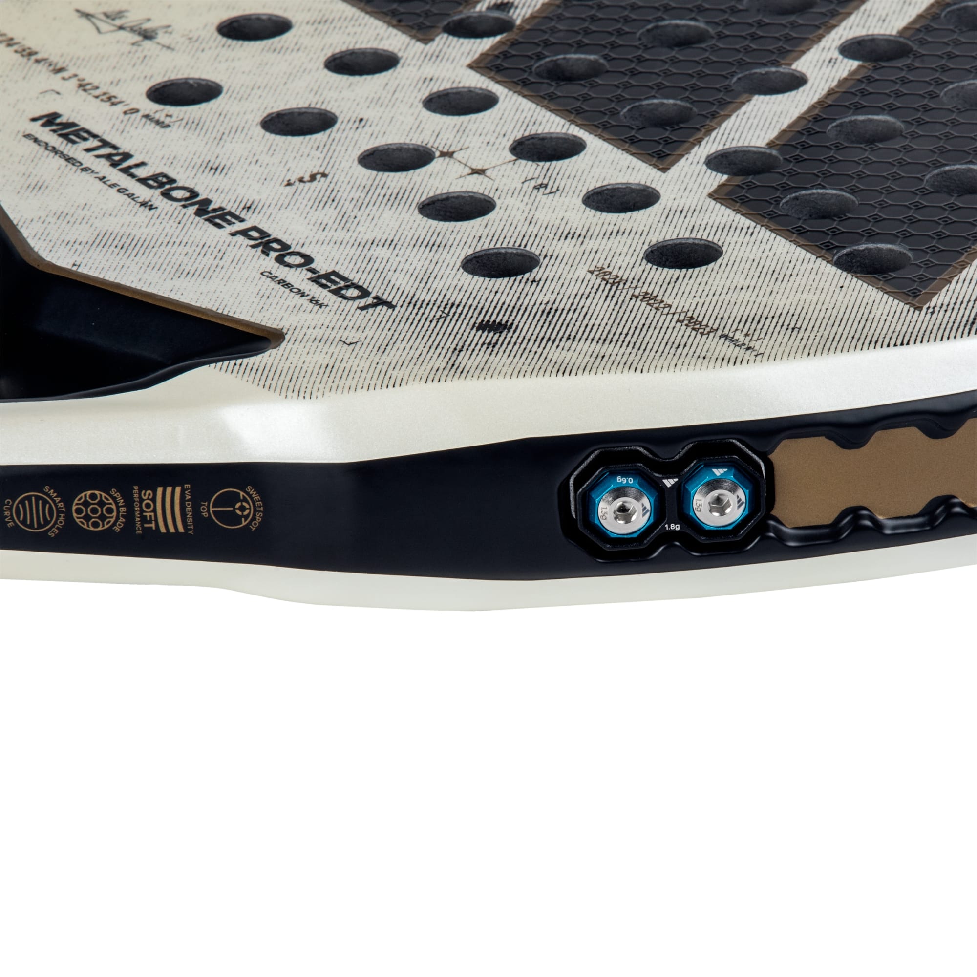 Descubre la raqueta Metalbone Pro ETD 2025, donde la innovación se une al rendimiento. Esta raqueta, desarrollada junto a Ale Galán, está diseñada para quienes exigen precisión y potencia en cada golpe. Con el sistema de peso y equilibrio Metalbone, puedes ajustar el peso de la raqueta a tu gusto, logrando una sensación personalizada que se adapte a tu estilo de juego. La tecnología Power Extra Grip (superficie texturizada para mayor agarre) potencia tus golpes, dándote la ventaja que necesitas para dominar el juego. Fabricada con un diseño de baja complejidad, proporciona potencia y rigidez, mientras que la tecnología Power Groove contribuye a la rigidez estructural de la raqueta. La goma EVA blanda de rendimiento y baja densidad ofrece una salida fiable de la pelota y comodidad durante el juego. La tecnología de carbono aluminizado 16K proporciona una gran rigidez y resistencia al desgaste, ideal para jugadores que prefieren un toque más firme. Con la estructura octogonal, disfruta de una menor torsión para lograr golpes más precisos. Añade esta raqueta a tu equipamiento deportivo y juega con confianza y estilo.