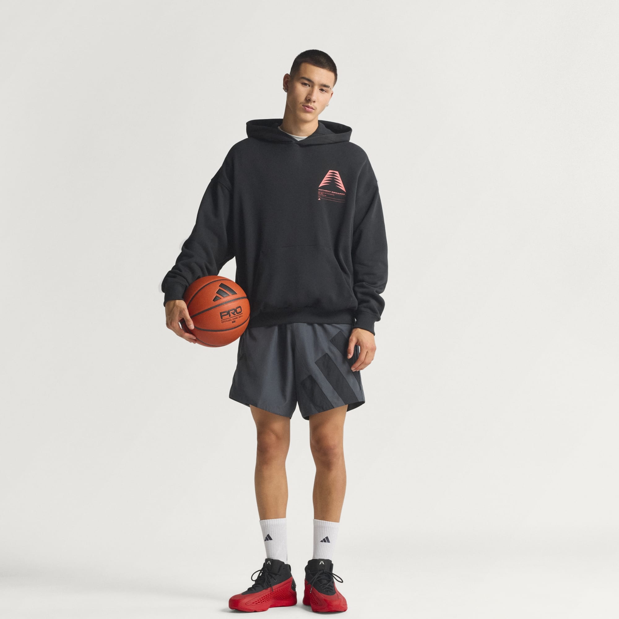 Trama tu plan para la cancha con la sudadera con capucha Anthony Edwards Schematic de adidas. Esta sudadera con capucha de baloncesto está inspirada en los planos técnicos que se utilizan para diseñar las estrategias y las jugadas de básquet. El tejido de felpa y el corte clásico te ofrecen calidez y comodidad durante las partidas entre amigos o en las sesiones de baloncesto durante días de frío.