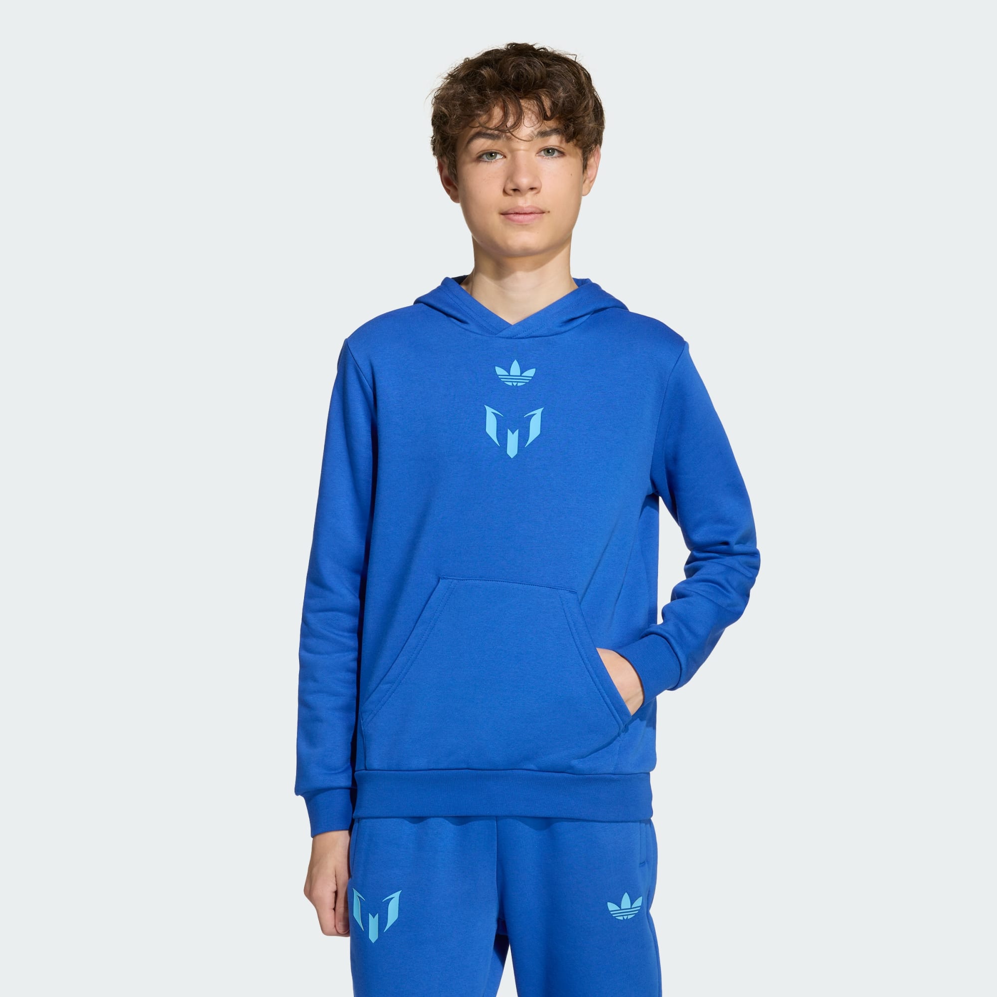 Contágiate de la magia de Messi con esta sudadera con capucha adidas para jóvenes hinchas. Se ha confeccionado en un suave tejido de felpa que te ofrece la comodidad que buscas para relajarte en casa o abrigarte en la banda. Los puños de canalé te resguardan del frío, mientras que el logotipo del astro argentino en el pecho refleja tu pasión por el mejor jugador de todos los tiempos.