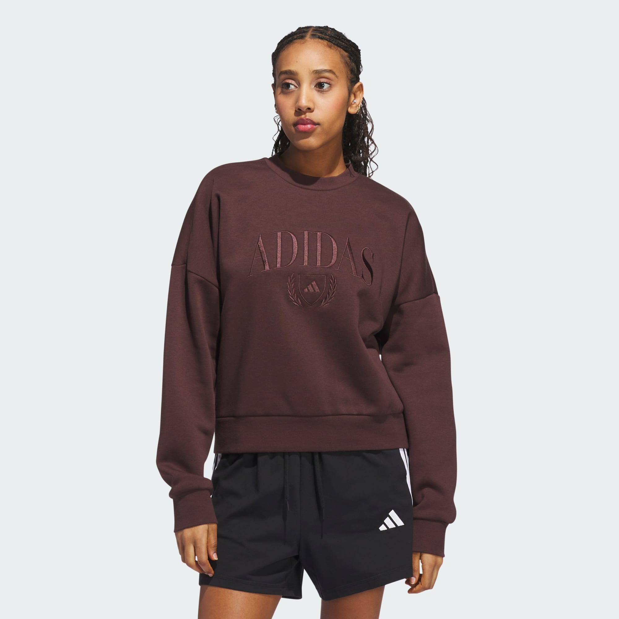 Ponerse esta sudadera adidas es como recibir un abrazo calentito. Se ha confeccionado en felpa suave que resulta excepcionalmente cálida, perfecta para acurrucarte junto al fuego o pasear por parajes nevados. El divertido estampado en el pecho aporta un toque divertido.