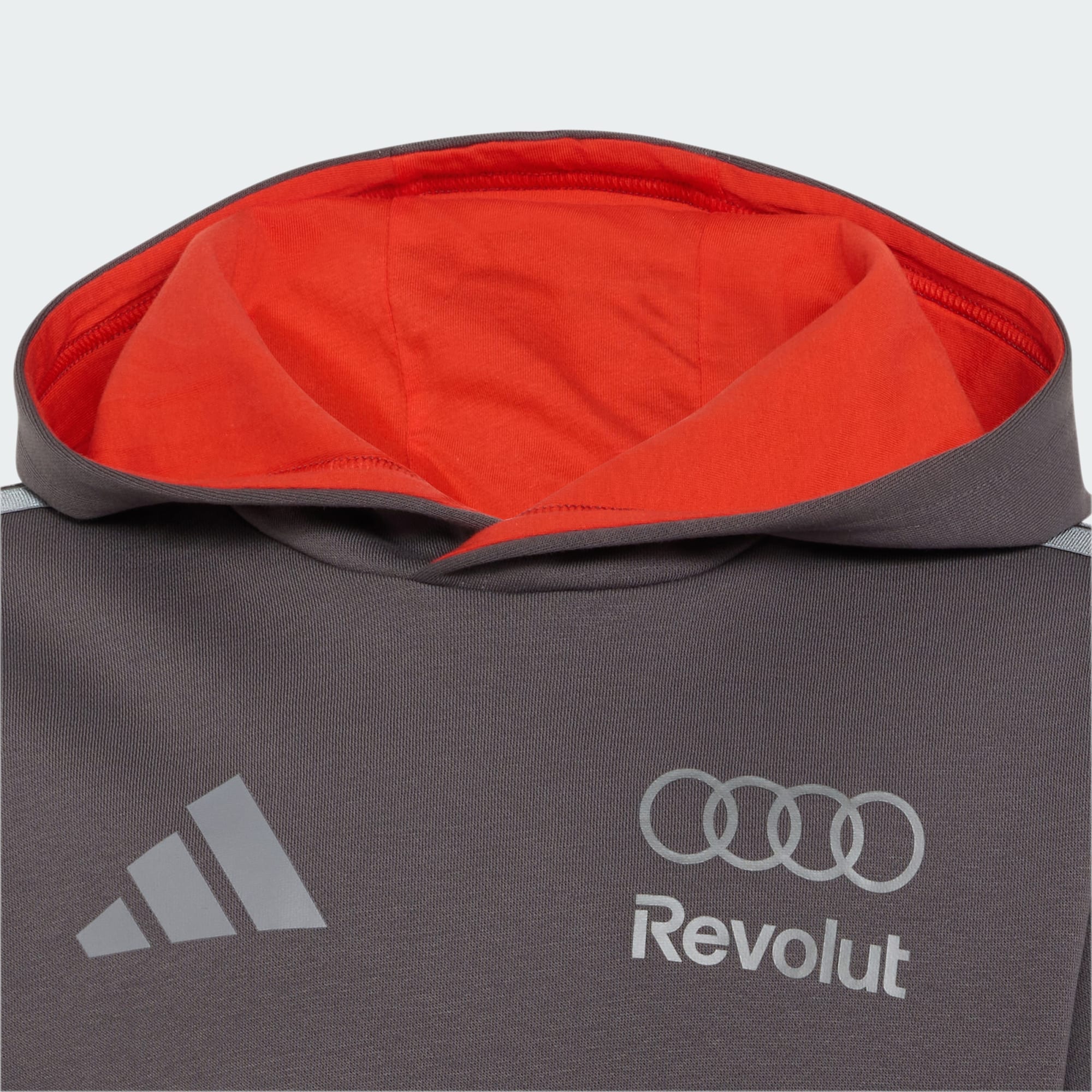 Una suave sudadera de felpa con capucha de Audi F1 que incorpora logotipos destacados y estilo de automovilismo