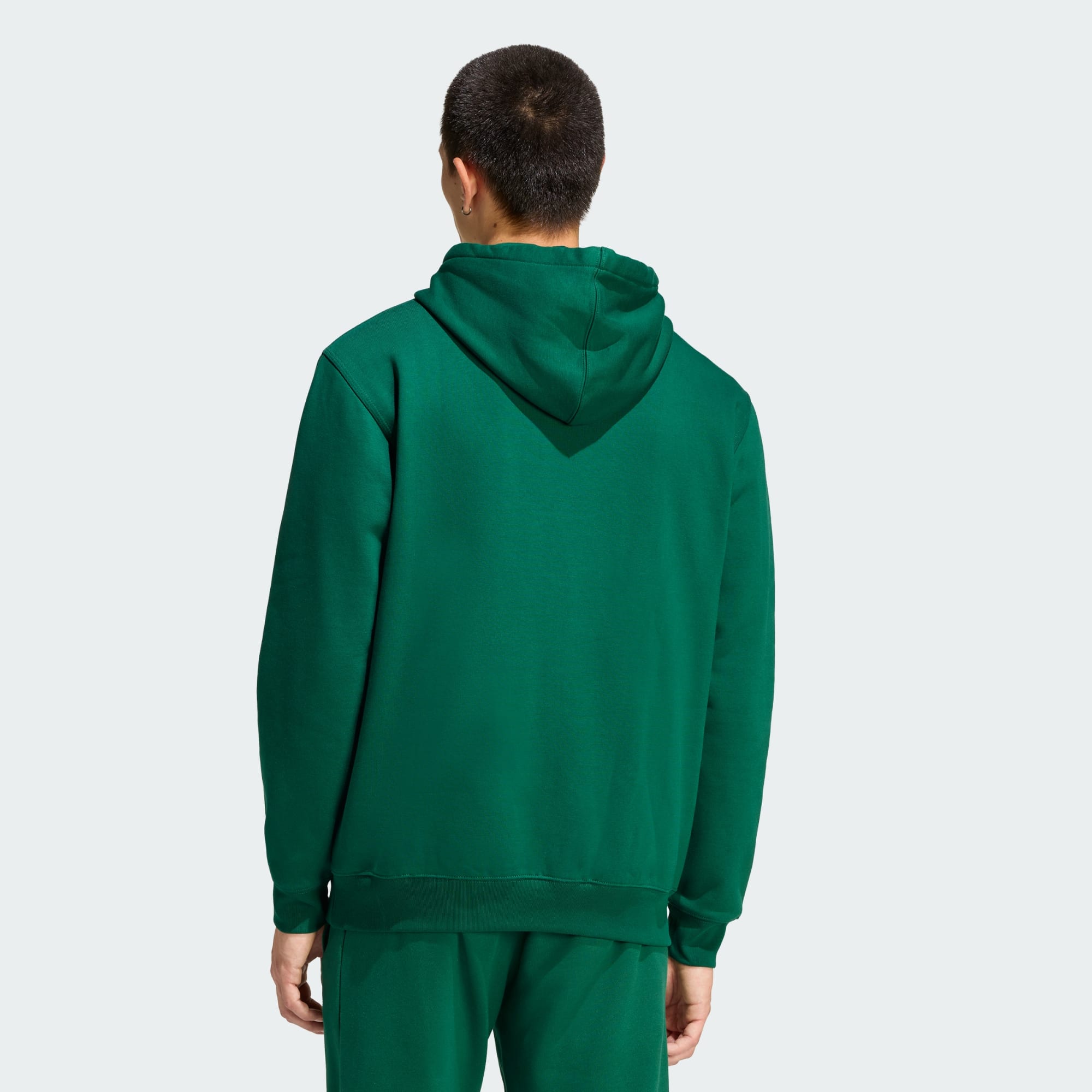 Esta sudadera adidas es una de esas prendas que querrás ponerte una y otra vez. Se ha confeccionado en un suave tejido de felpa con un corte holgado que te permite moverte con total libertad. Cuenta con todos los detalles que una buena sudadera debe tener, como un gran bolsillo canguro, una amplia capucha y puños de canalé para evitar que las mangas se suban. El pequeño trébol en el pecho remata su look deportivo.