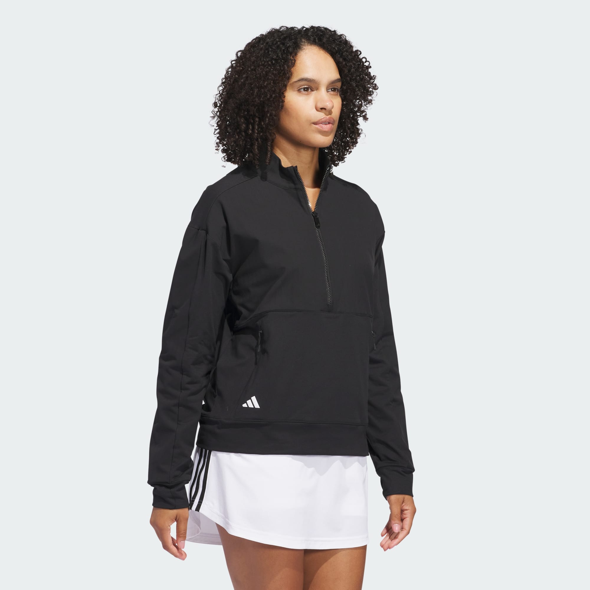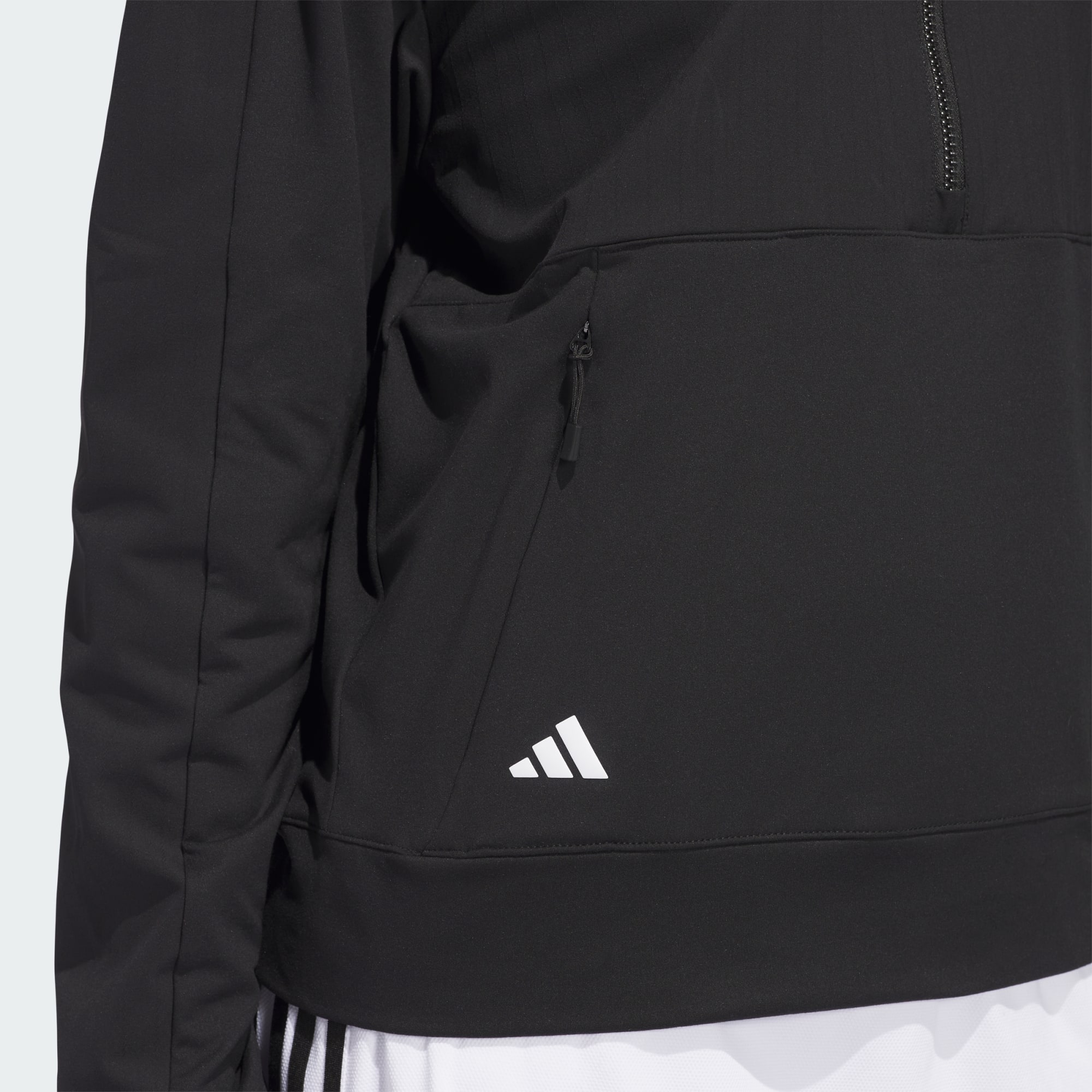 Suit up for cool weather rounds. This adidas golf jacket blends classic pullover style with a hybrid knit and woven materials that support full mobility. Zip pockets keep course day basics easy to grab, and a loose fit offer plenty of room to layer and move. This product is made with at least 70% recycled materials. By reusing materials that have already been created, we help to reduce waste and our reliance on finite resources and reduce the footprint of the products we make.