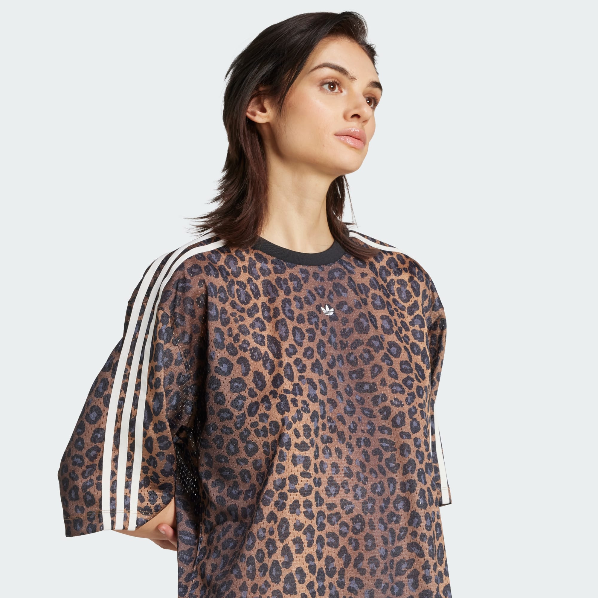 Apuesta por el maximalismo. Este vestido camiseta adidas luce un corte holgado y un llamativo estampado de leopardo que no pasa desapercibido. Su tejido de malla le confiere una gran sensación de ligereza. Ponte este vestido y presume de estilo cómodo y atrevido.